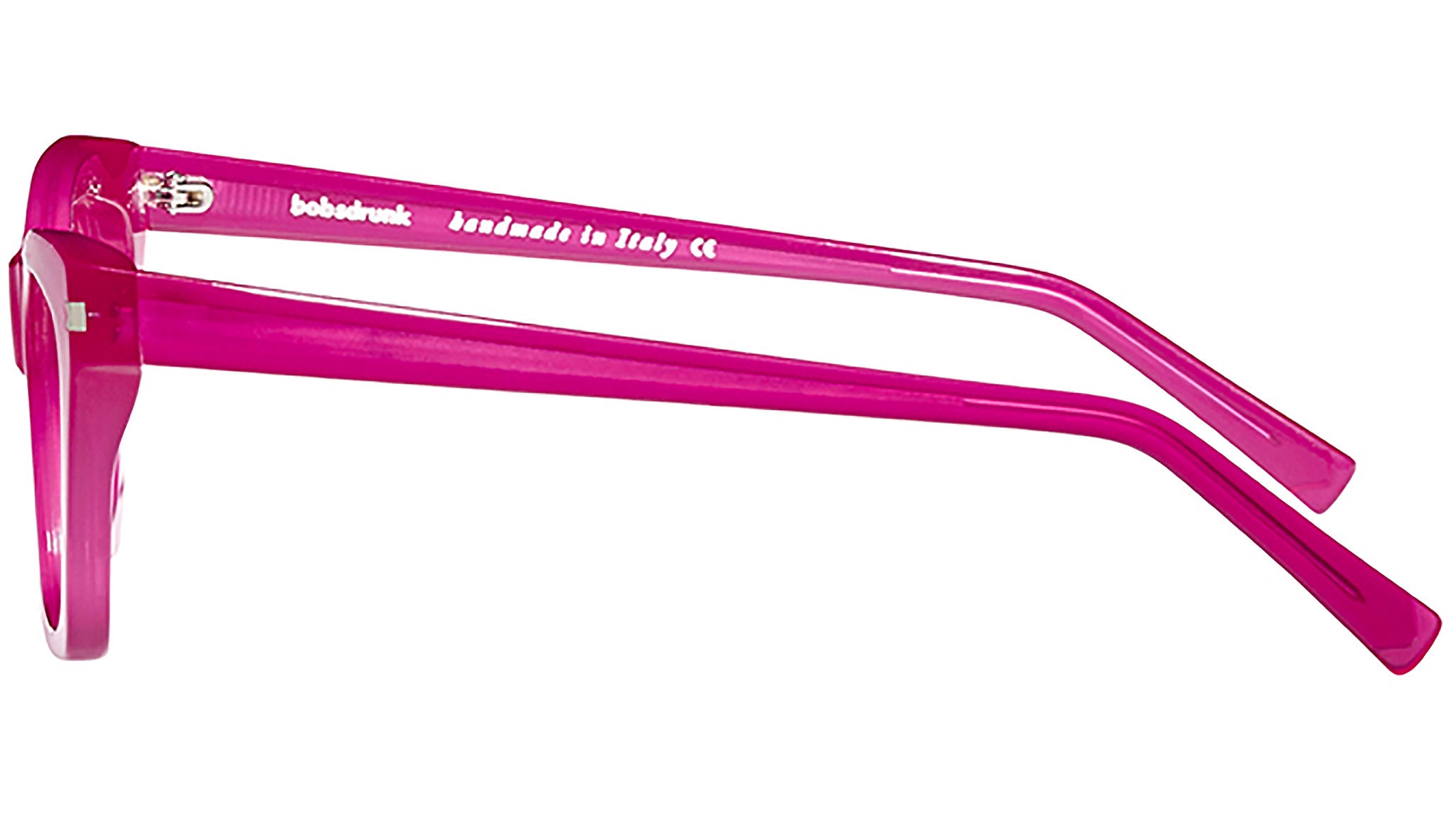 Montatura da vista Bobsdrunk Cassandra 53 codice colore 273 in tonalità fucsia lattiginoso. Prodotti senza tempo e forme audaci convivono in questa nuova collezione Eyewear 2023. Le linee sono disegnate con maestria, per creare un effetto di audace leggerezza. Ogni paio di occhiali Bobsdrunk è caratterizzato da un dettaglio emblematico, mostrato sulla parte anteriore e sulla punta delle aste, che evidenzia il valore del marchio. Rappresenta in un iconico simbolo l'unione della lettera iniziale e finale di Bobsdrunk. La scelta accurata dei materiali, la selezione dell'artigianalità e una costante ricerca cromatica sono le prerogative di ogni creazione di Bobsdrunk.