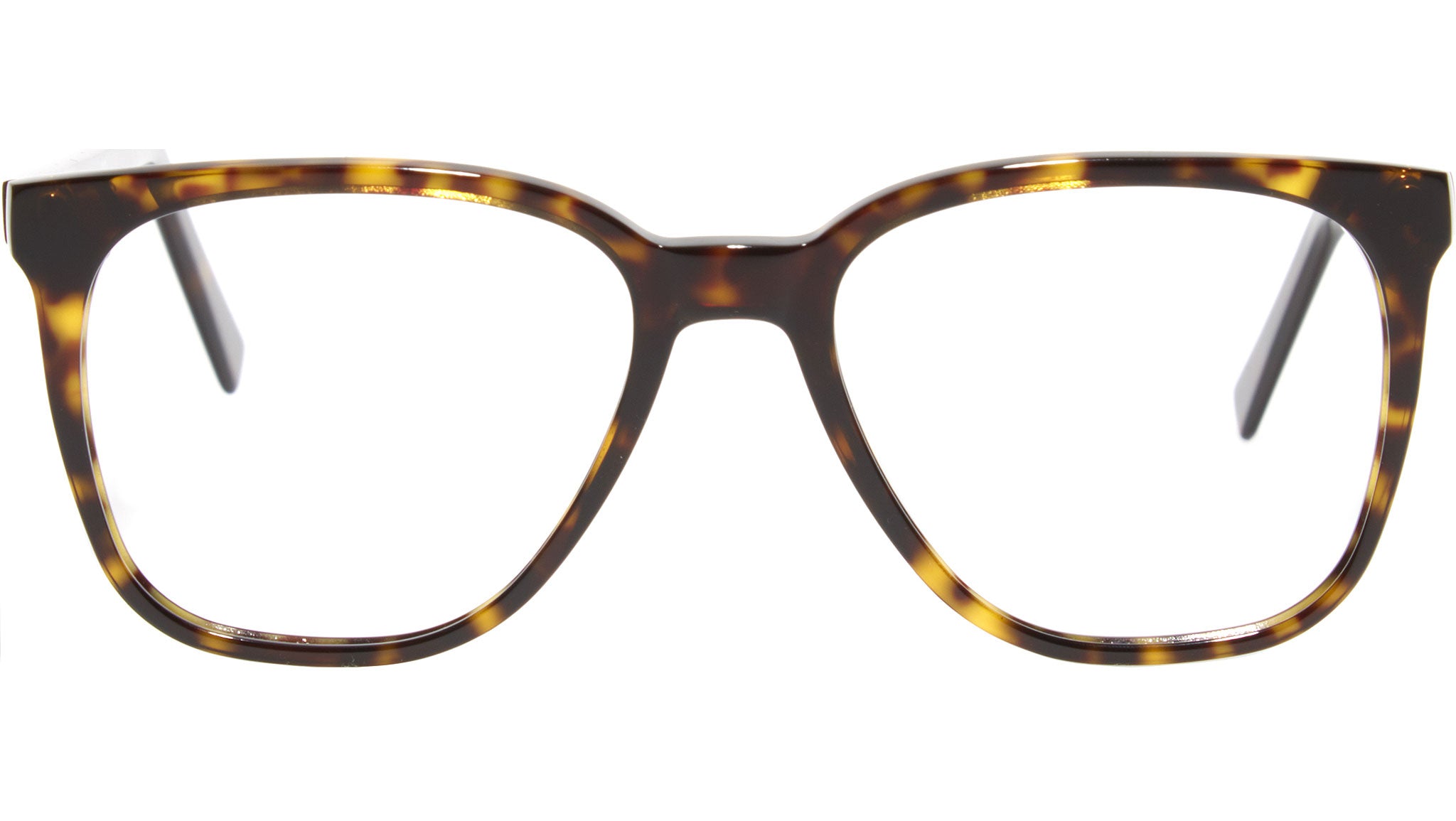 Acetate frame in tortoise. lenses with anti-glare filters.