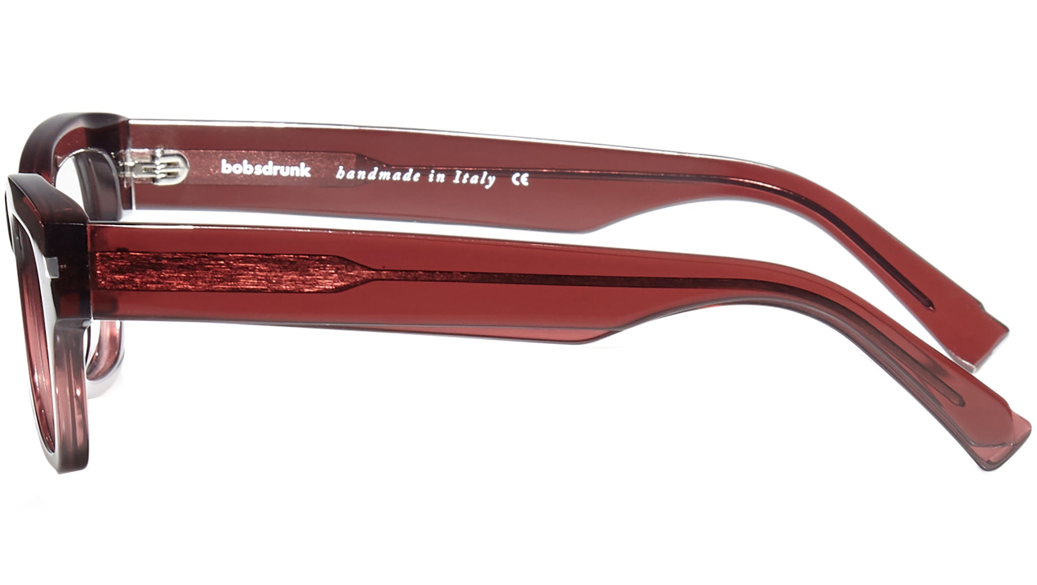 Montatura da vista Bobsdrunk Eric codice colore 140 in tonalità borgogna trasparente. Prodotti senza tempo e forme audaci convivono in questa originale collezione Eyewear. Le linee sono disegnate con maestria, per creare un effetto di audace leggerezza. Ogni paio di occhiali Bobsdrunk è caratterizzato da un dettaglio emblematico, mostrato sulla parte anteriore e sulla punta delle aste, che evidenzia il valore del marchio. Rappresenta in un iconico simbolo l'unione della lettera iniziale e finale di Bobsdrunk. La scelta accurata dei materiali, la selezione dell'artigianalità e una costante ricerca cromatica sono le prerogative di ogni creazione di Bobsdrunk.