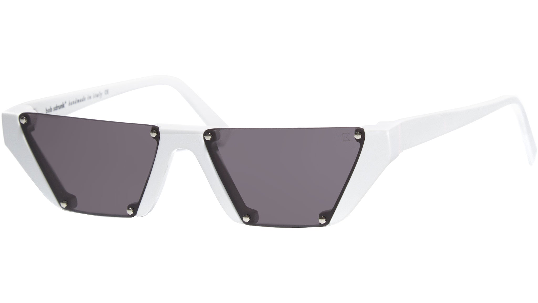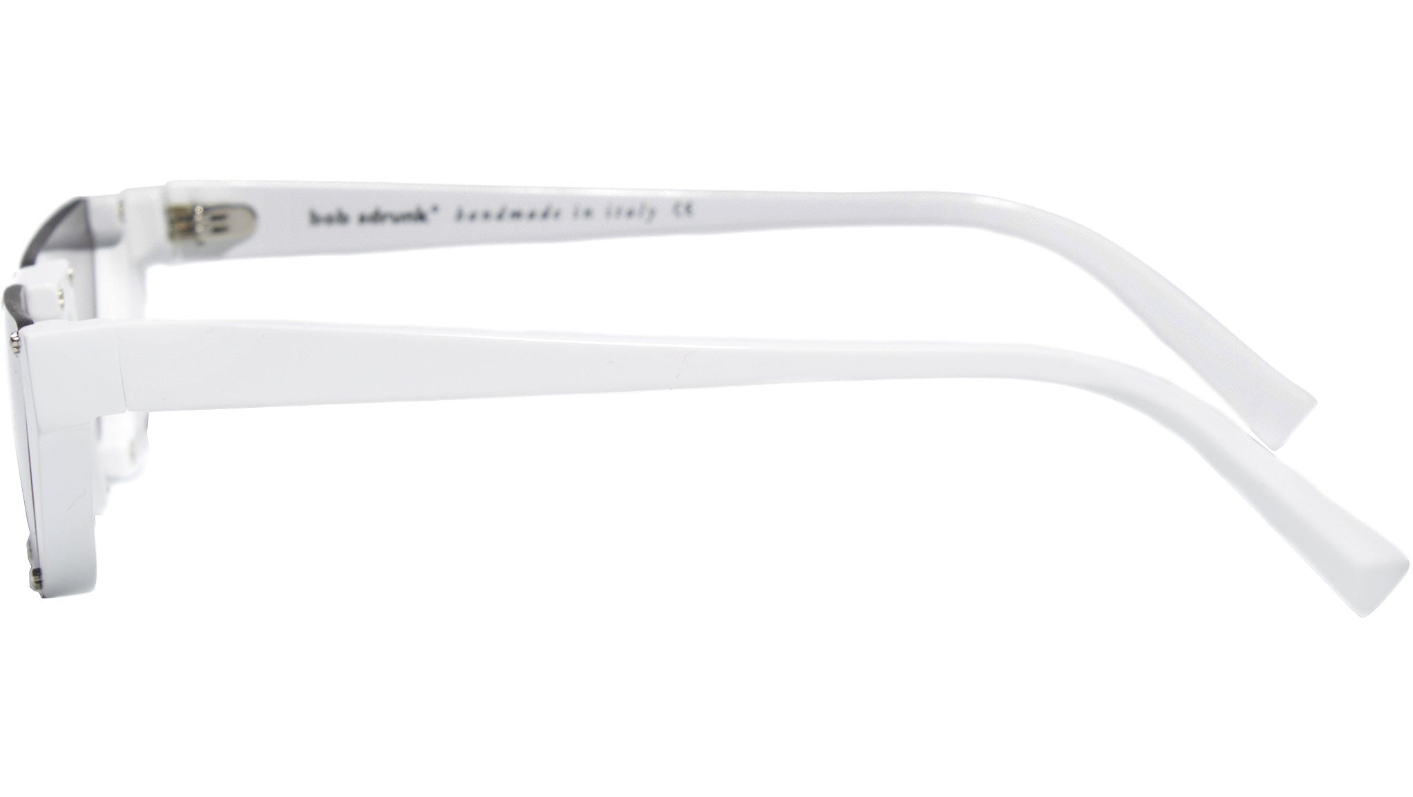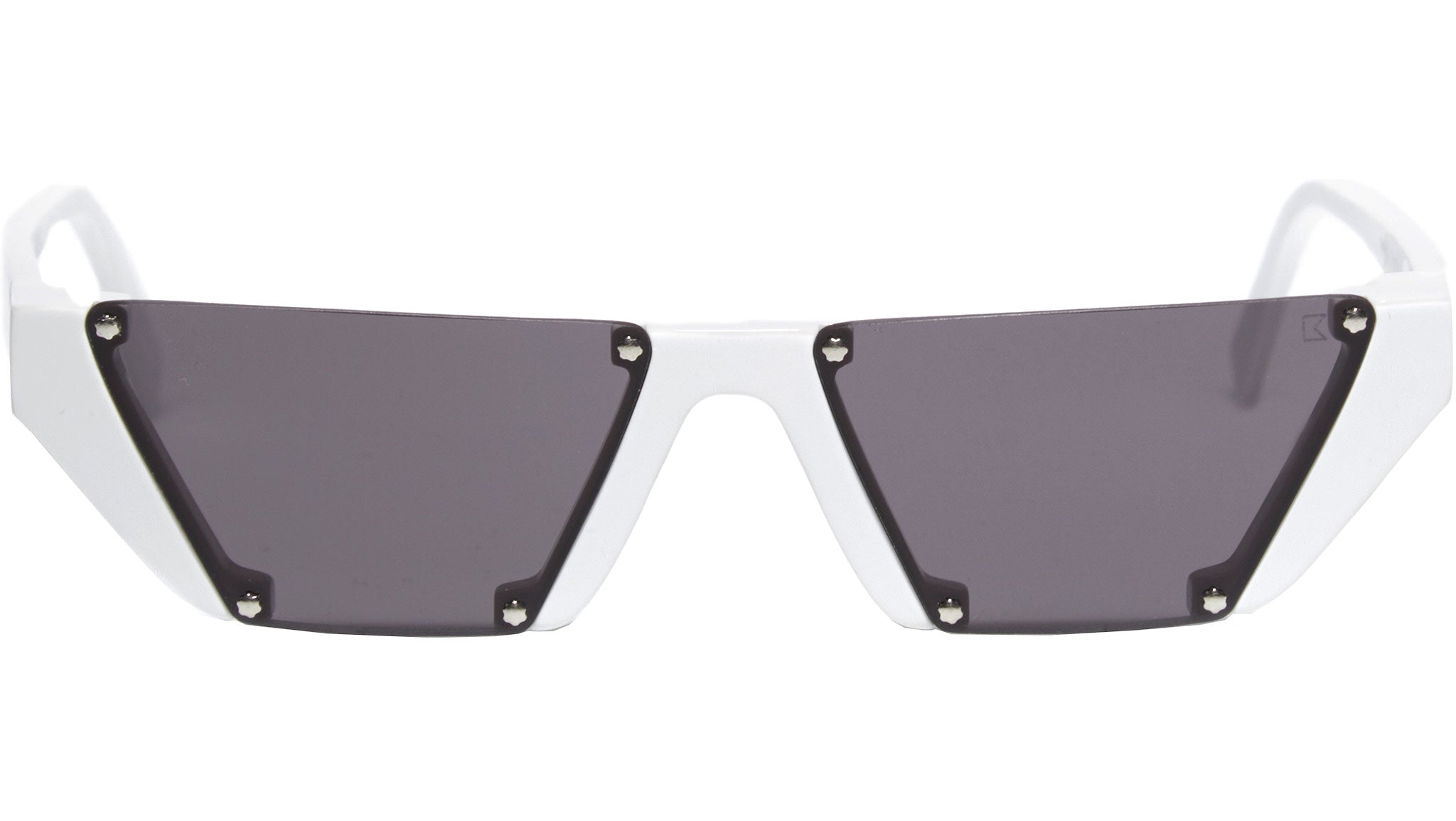 Acetate frame in white with silver details. black solid lenses.