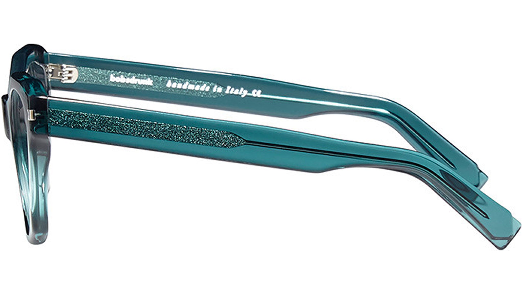 Montatura da vista Bobsdrunk Nina codice colore 215 in tonalità verde smeraldo trasparente. Prodotti senza tempo e forme audaci convivono in questa nuova collezione Eyewear 2023. Le linee sono disegnate con maestria, per creare un effetto di audace leggerezza. Ogni paio di occhiali Bobsdrunk è caratterizzato da un dettaglio emblematico, mostrato sulla parte anteriore e sulla punta delle aste, che evidenzia il valore del marchio. Rappresenta in un iconico simbolo l'unione della lettera iniziale e finale di Bobsdrunk. La scelta accurata dei materiali, la selezione dell'artigianalità e una costante ricerca cromatica sono le prerogative di ogni creazione di Bobsdrunk.