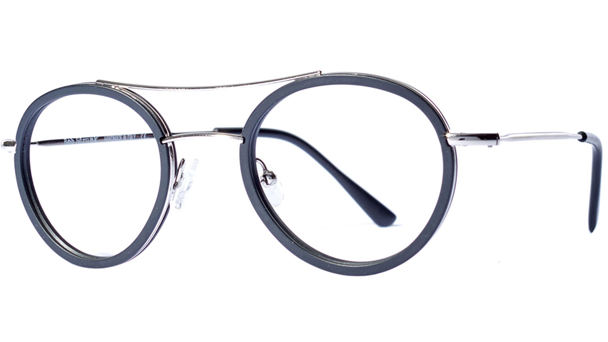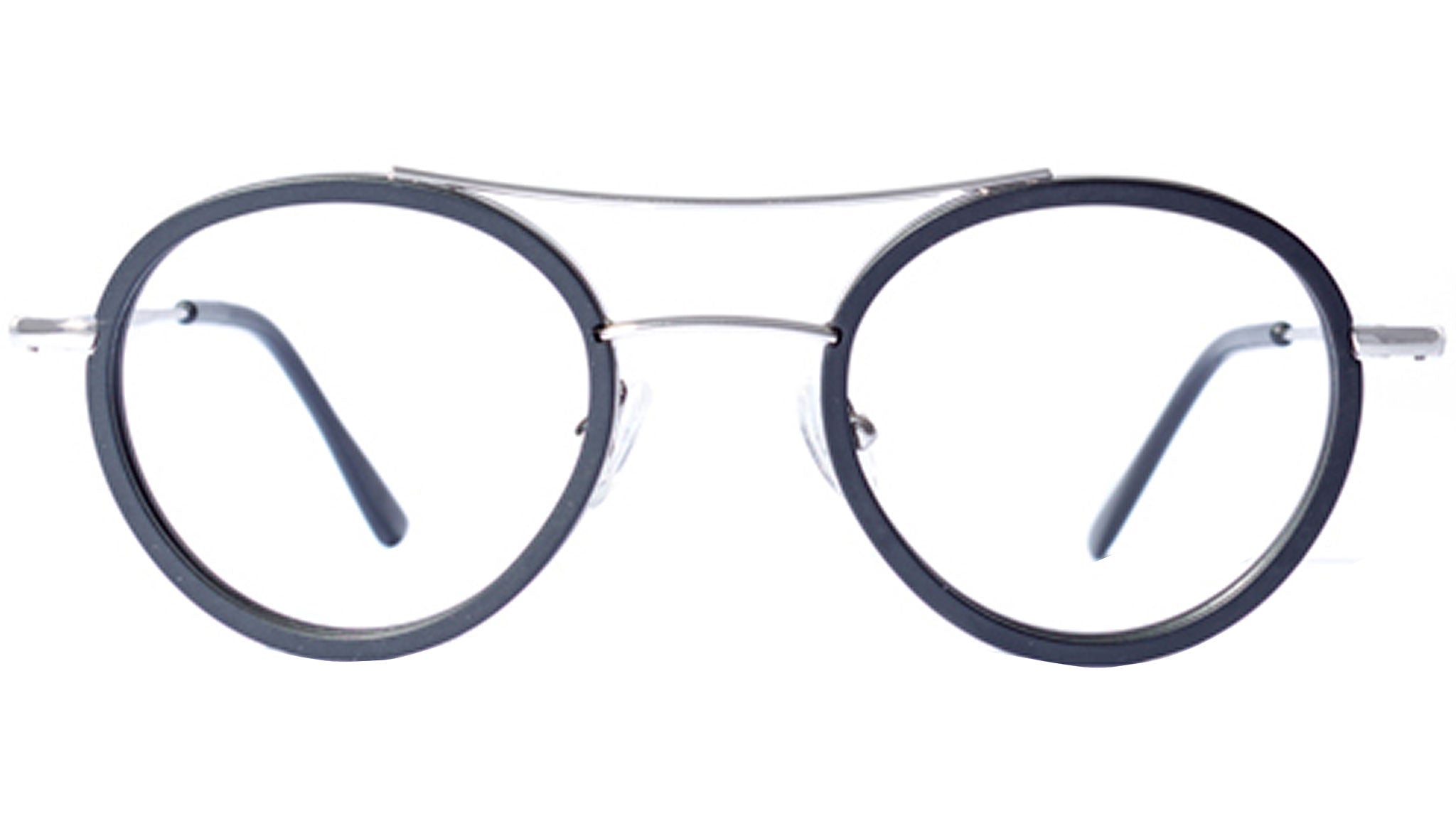 Metallic frame in silver with black acetate. lenses with anti-glare filters.