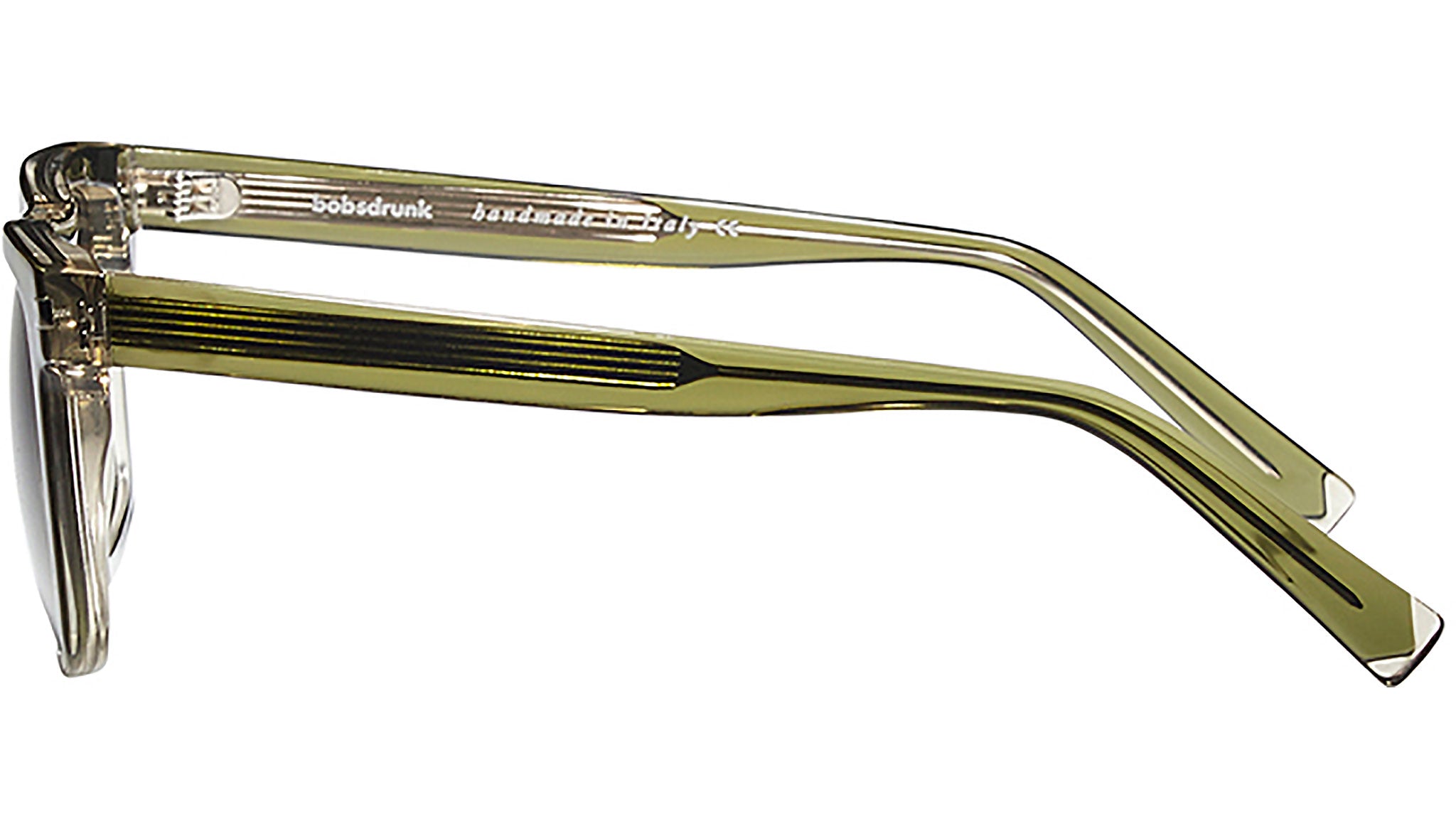 Occhiali da sole Bobsdrunk Ringo/S codice colore 115 in verde trasparente / verde chiaro con lenti grigio sfumato / verde sfumato. Cura e attenzione ai dettagli, un elevato standard nella qualità dei materiali e artigianalità 100% made in Italy sono facilmente riconoscibili in ogni prodotto Bobsdrunk. Ogni modello è una perfetta combinazione tra estetica e funzionalità, dal momento della concezione ideale delle forme, fino alla realizzazione finale. Attraverso la scelta attenta dei colori, viene messo in evidenza il valore di ogni dettaglio, per ottenere montature eleganti e senza tempo.