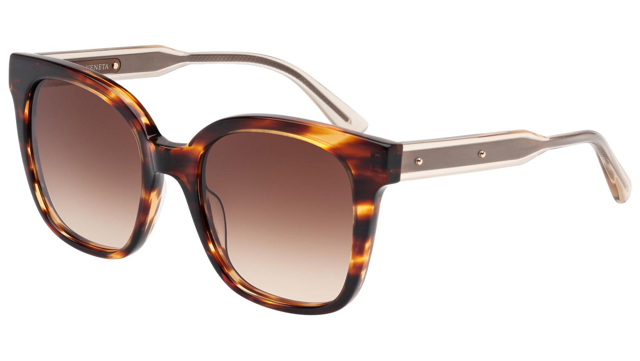 Bottega Veneta sunglasses collection model 0003S 004 featuring shiny brown striped havana front frame and gradient brown lens. Inspired by Italian culture with a global outlook, the House is defined by a distinctly refined attitude. Bottega Veneta uses noble materials to create considered pieces that become part of their owner’s lives.
