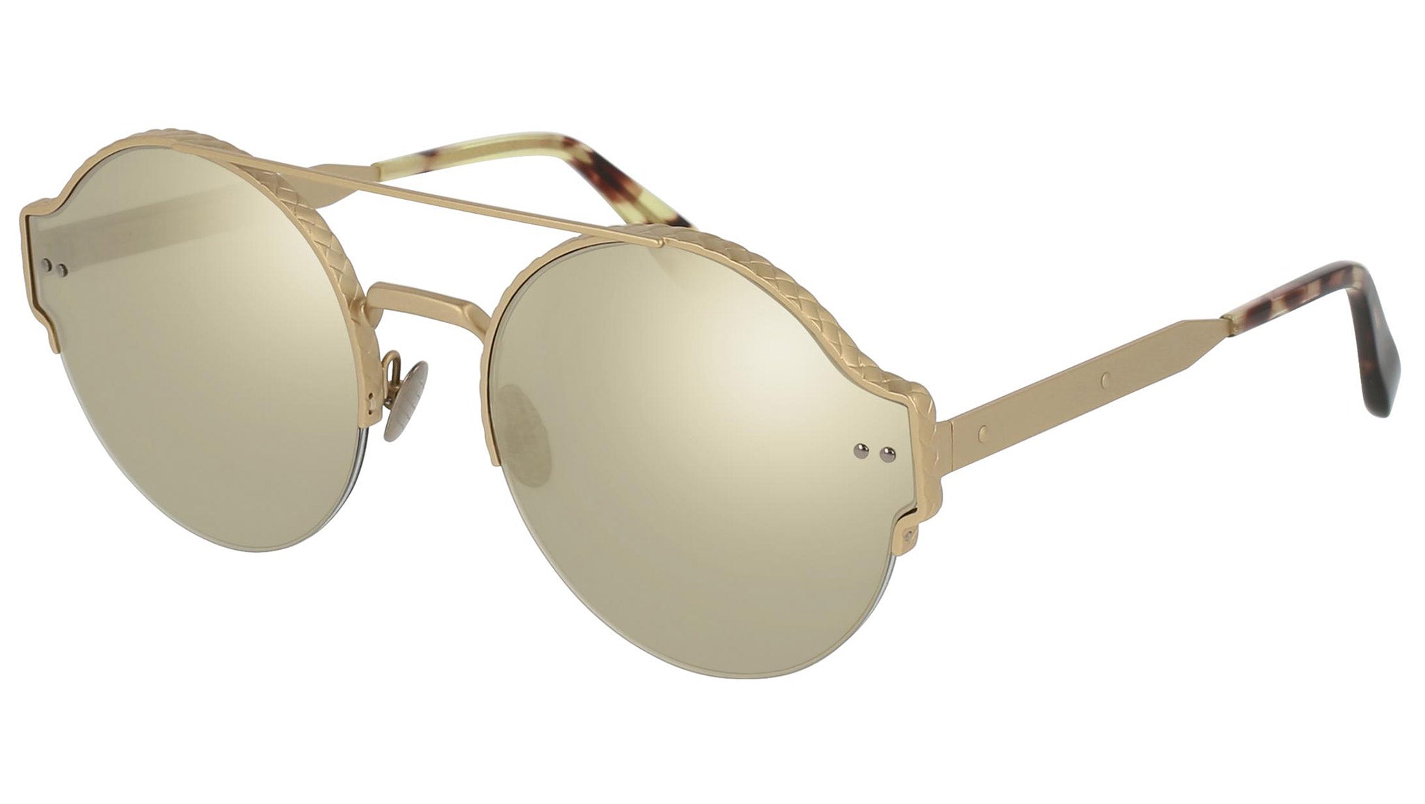 Bottega Veneta sunglasses collection model 0013S 006 featuring semimatte light gold front frame and super ivory lens. Inspired by Italian culture with a global outlook, the House is defined by a distinctly refined attitude. Bottega Veneta uses noble materials to create considered pieces that become part of their owner’s lives.