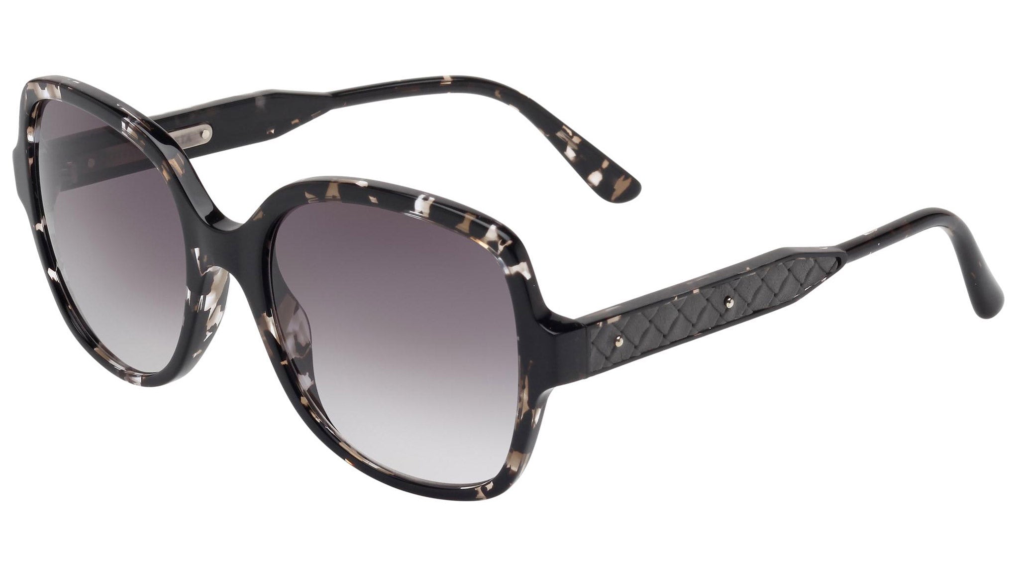 Bottega Veneta sunglasses collection model 0015S 006 featuring shiny grey havana front frame and gradient grey lens. Inspired by Italian culture with a global outlook, the House is defined by a distinctly refined attitude. Bottega Veneta uses noble materials to create considered pieces that become part of their owner’s lives.