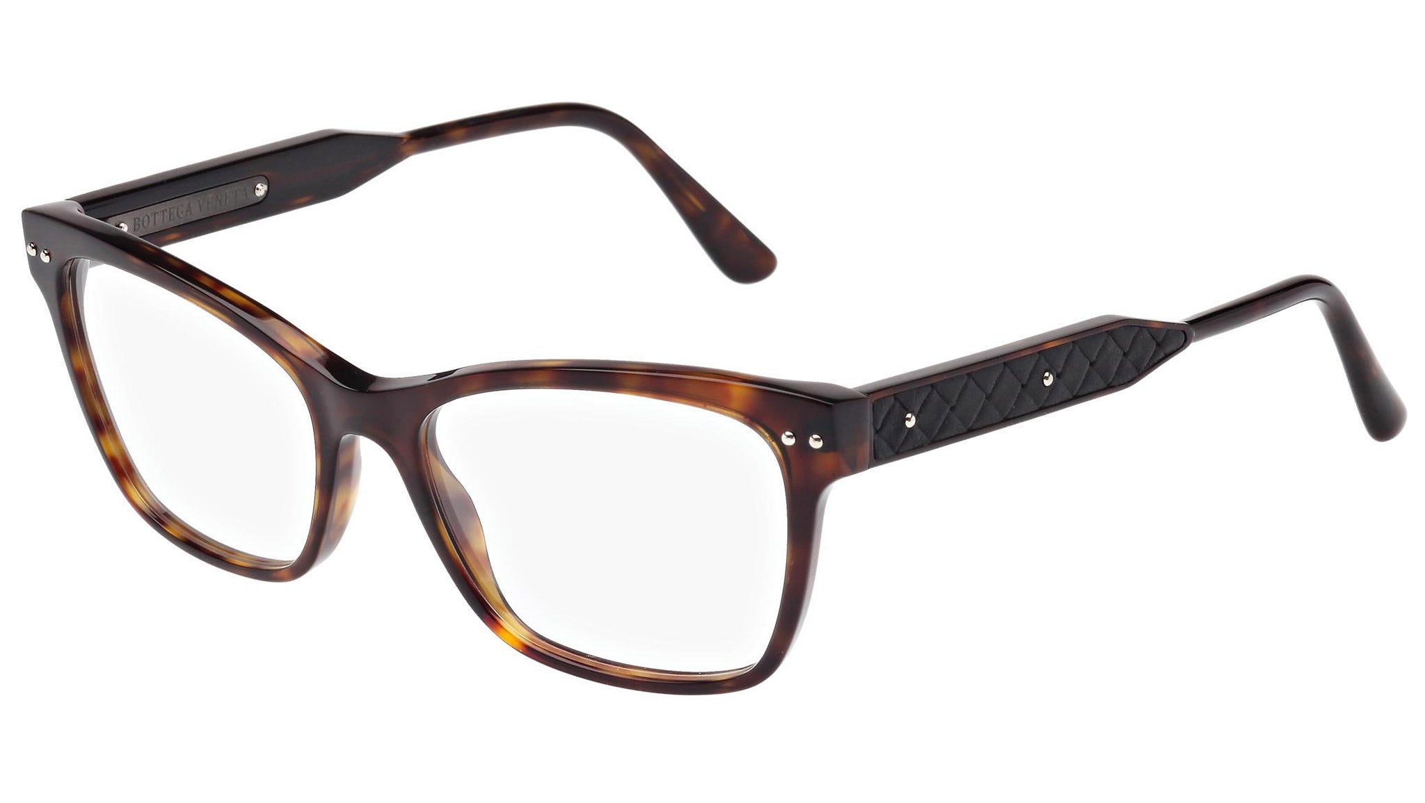 Occhiali da vista Bottega Veneta modello 0016O 002 featuring shiny dark havana front frame and havana temple.