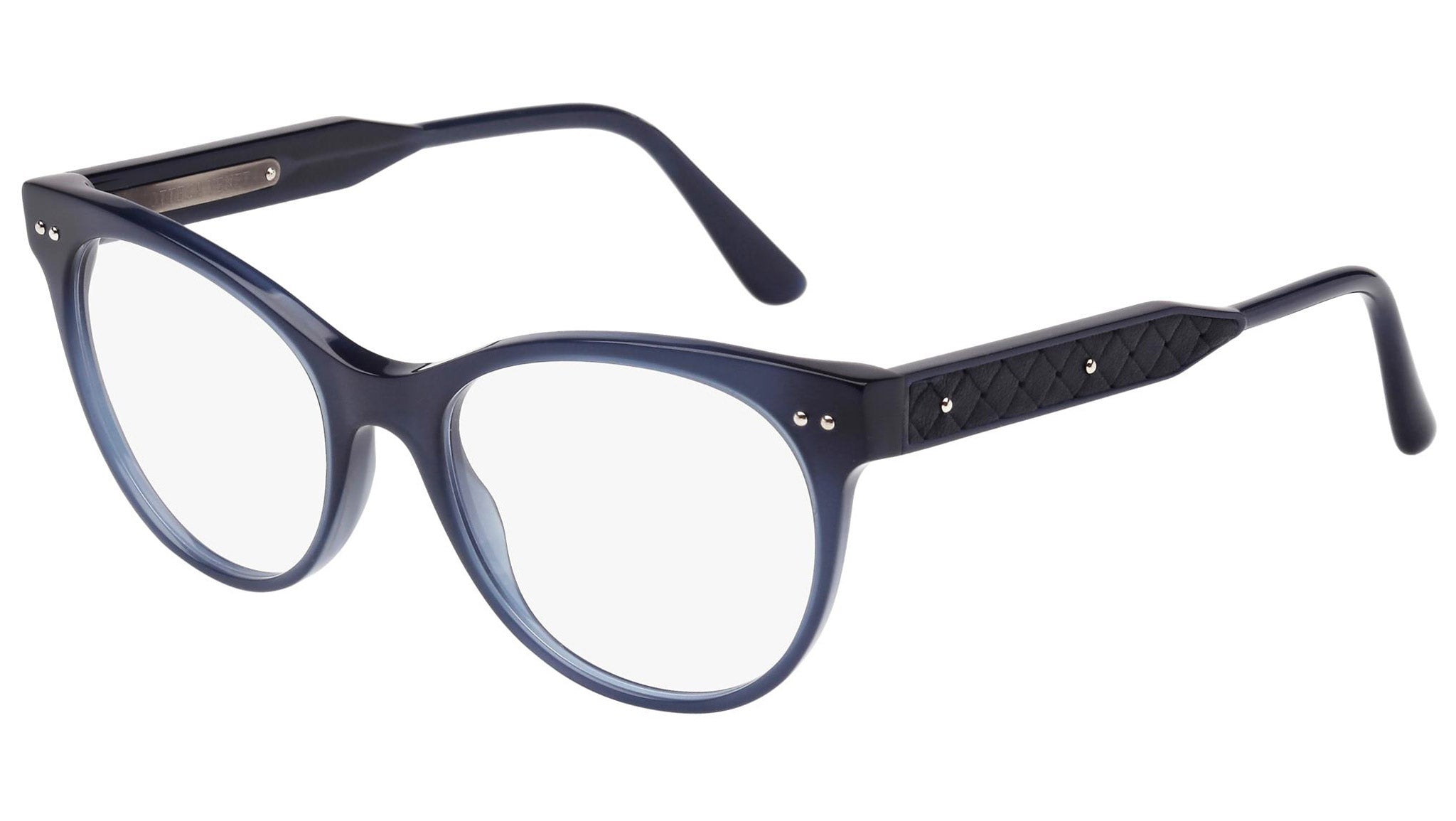 Occhiali da vista Bottega Veneta modello 0017O 004 featuring shiny blue front frame and blue temple.