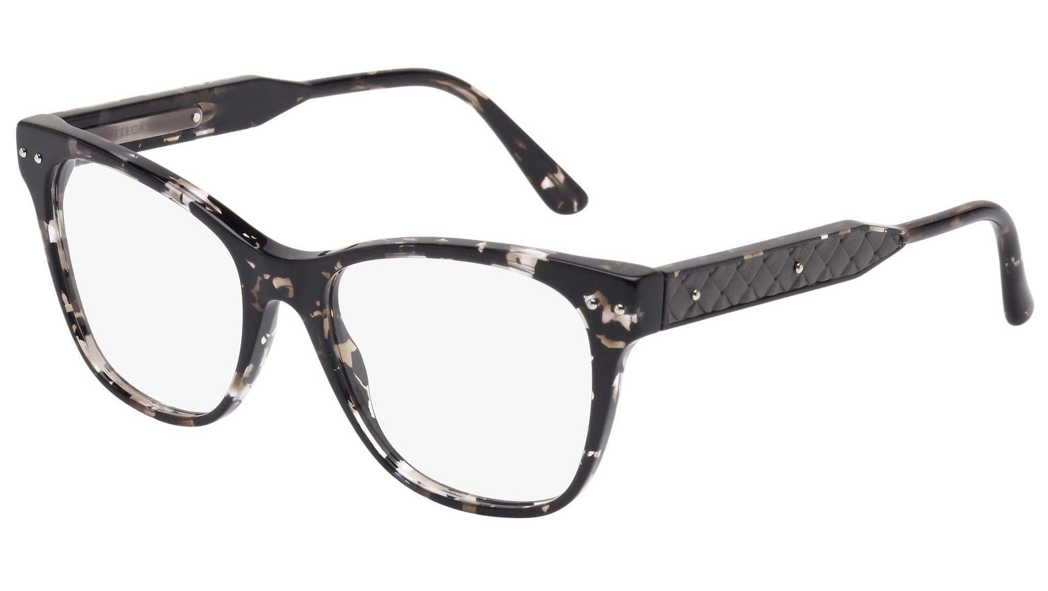 Occhiali da vista Bottega Veneta modello 0036O 002 featuring shiny grey havana front frame and havana temple.