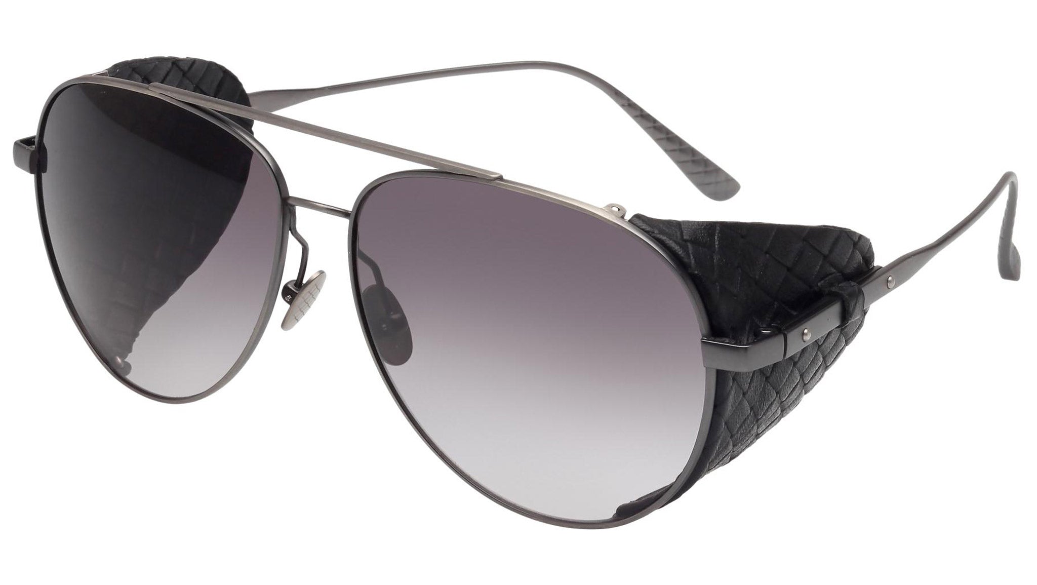 Bottega Veneta sunglasses collection model 0041S 002 featuring semimatte antique silver front frame and gradient grey lens. Inspired by Italian culture with a global outlook, the House is defined by a distinctly refined attitude. Bottega Veneta uses noble materials to create considered pieces that become part of their owner’s lives.