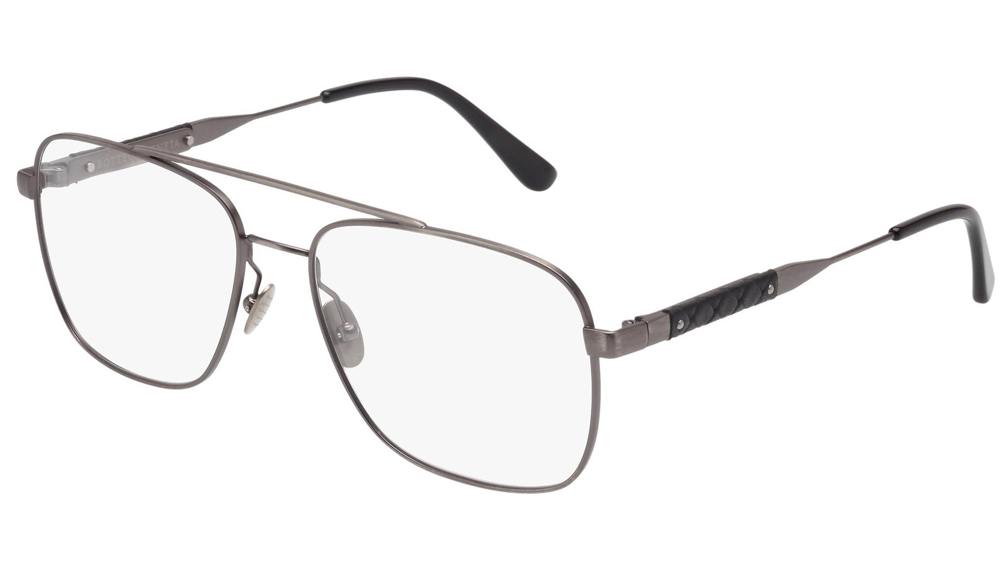 Occhiali da vista Bottega Veneta modello 0043O 002 featuring semimatte antique silver front frame and silver temple.