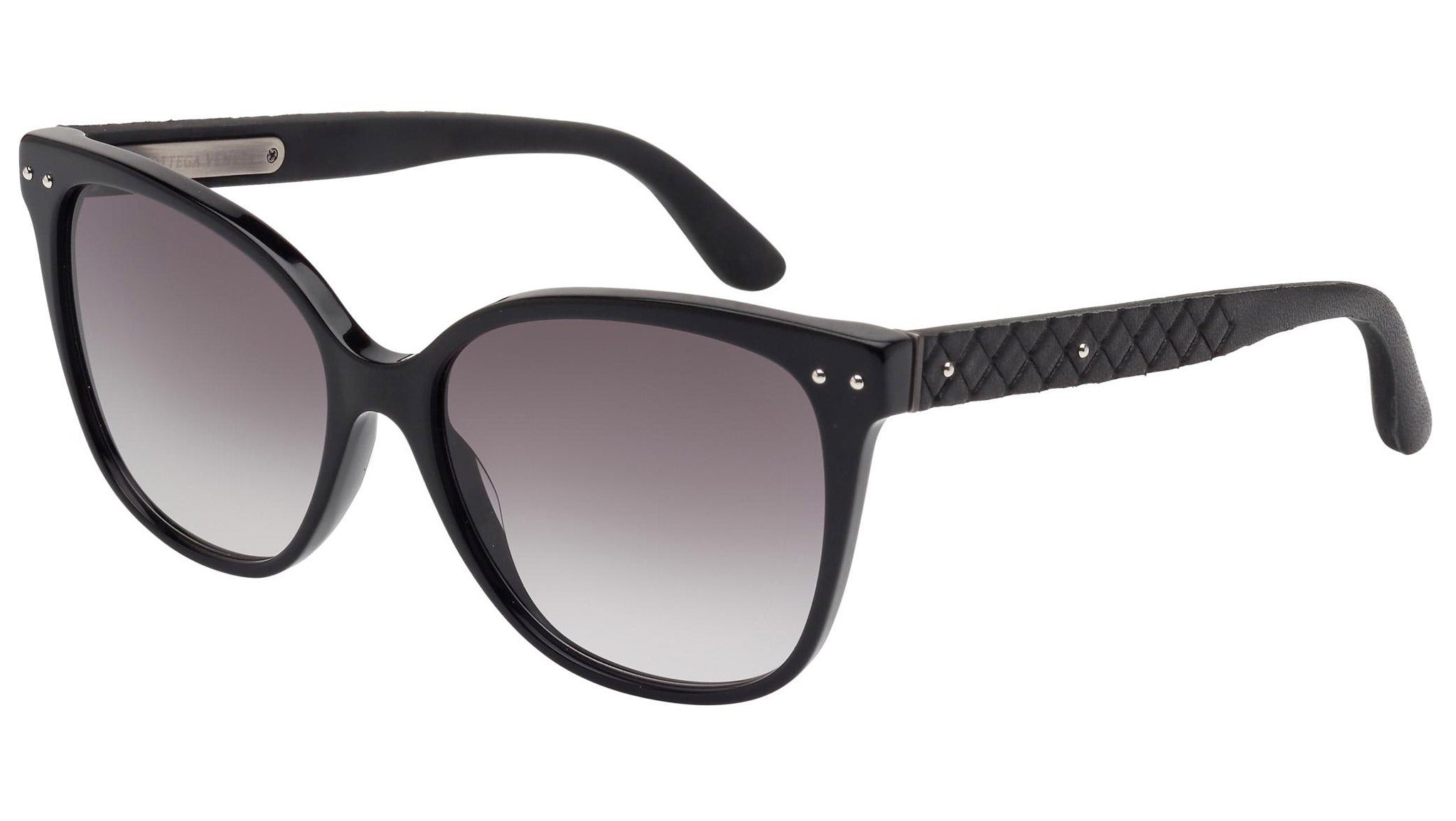 Bottega Veneta sunglasses collection model 0044S 001 featuring shiny black front frame and gradient grey lens. Inspired by Italian culture with a global outlook, the House is defined by a distinctly refined attitude. Bottega Veneta uses noble materials to create considered pieces that become part of their owner’s lives.