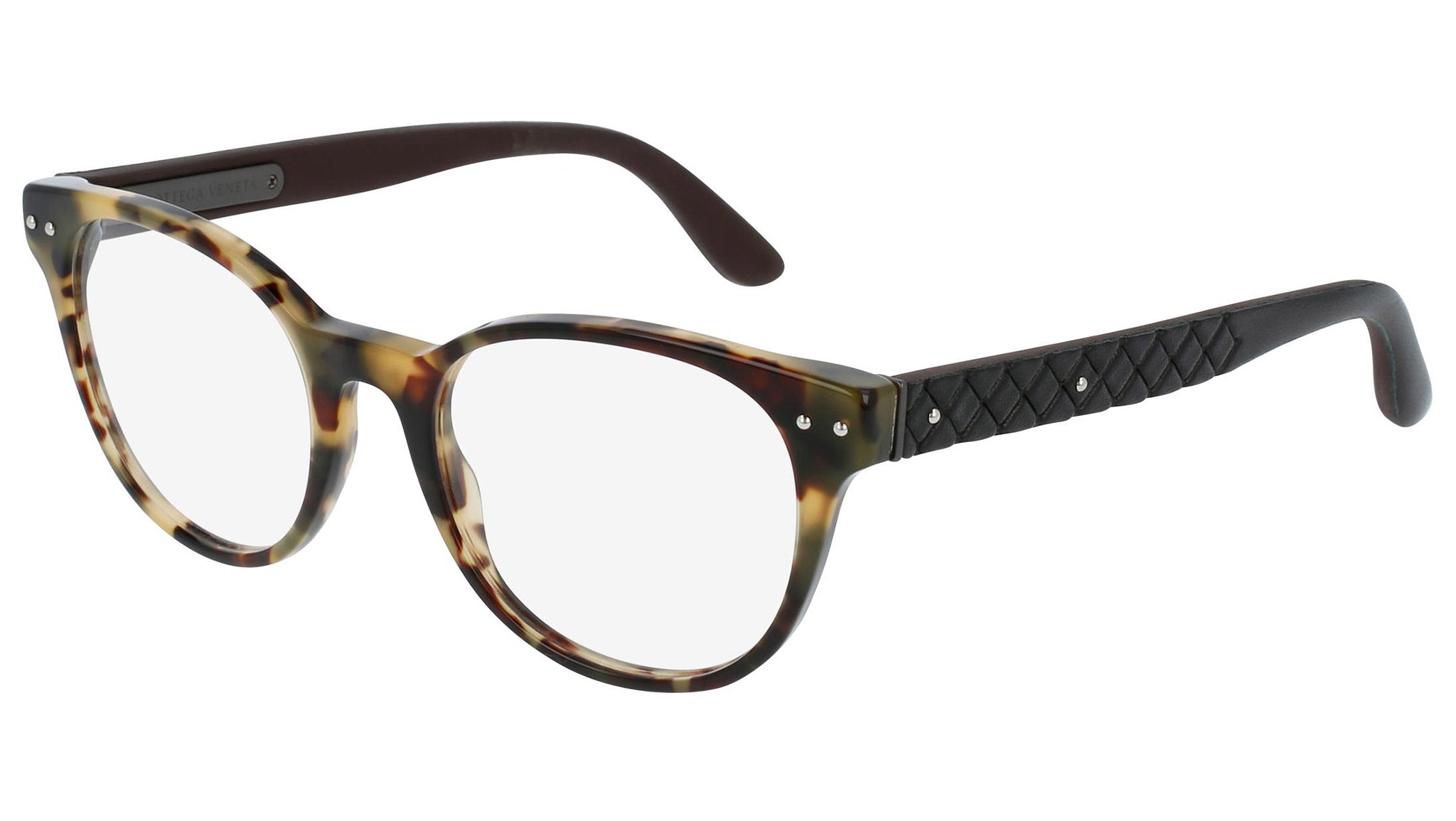 Occhiali da vista Bottega Veneta modello 0046O 005 featuring shiny havana front frame and black temple.