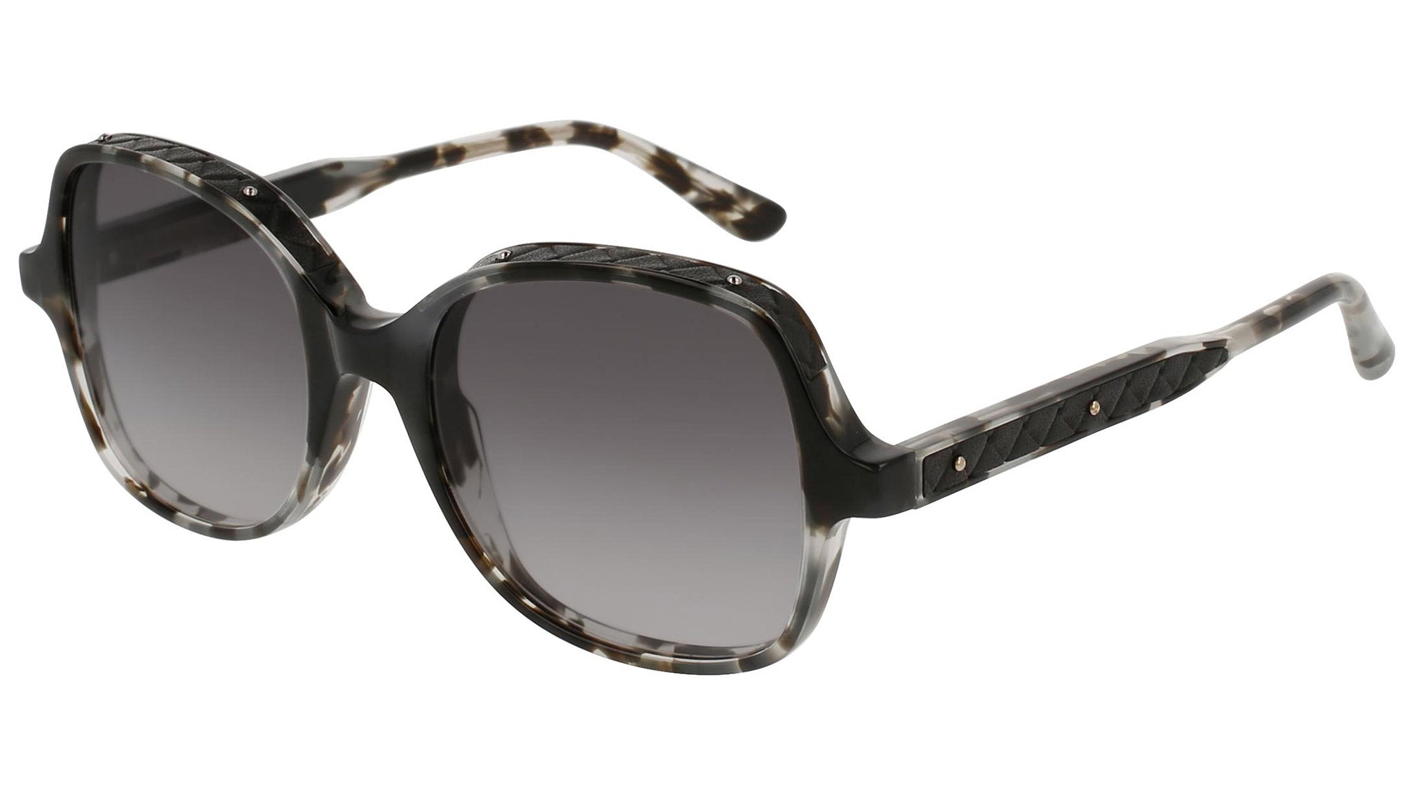 Bottega Veneta sunglasses collection model 0068S 004 featuring white havana and black front frame and gradient grey lens. Inspired by Italian culture with a global outlook, the House is defined by a distinctly refined attitude. Bottega Veneta uses noble materials to create considered pieces that become part of their owner’s lives.