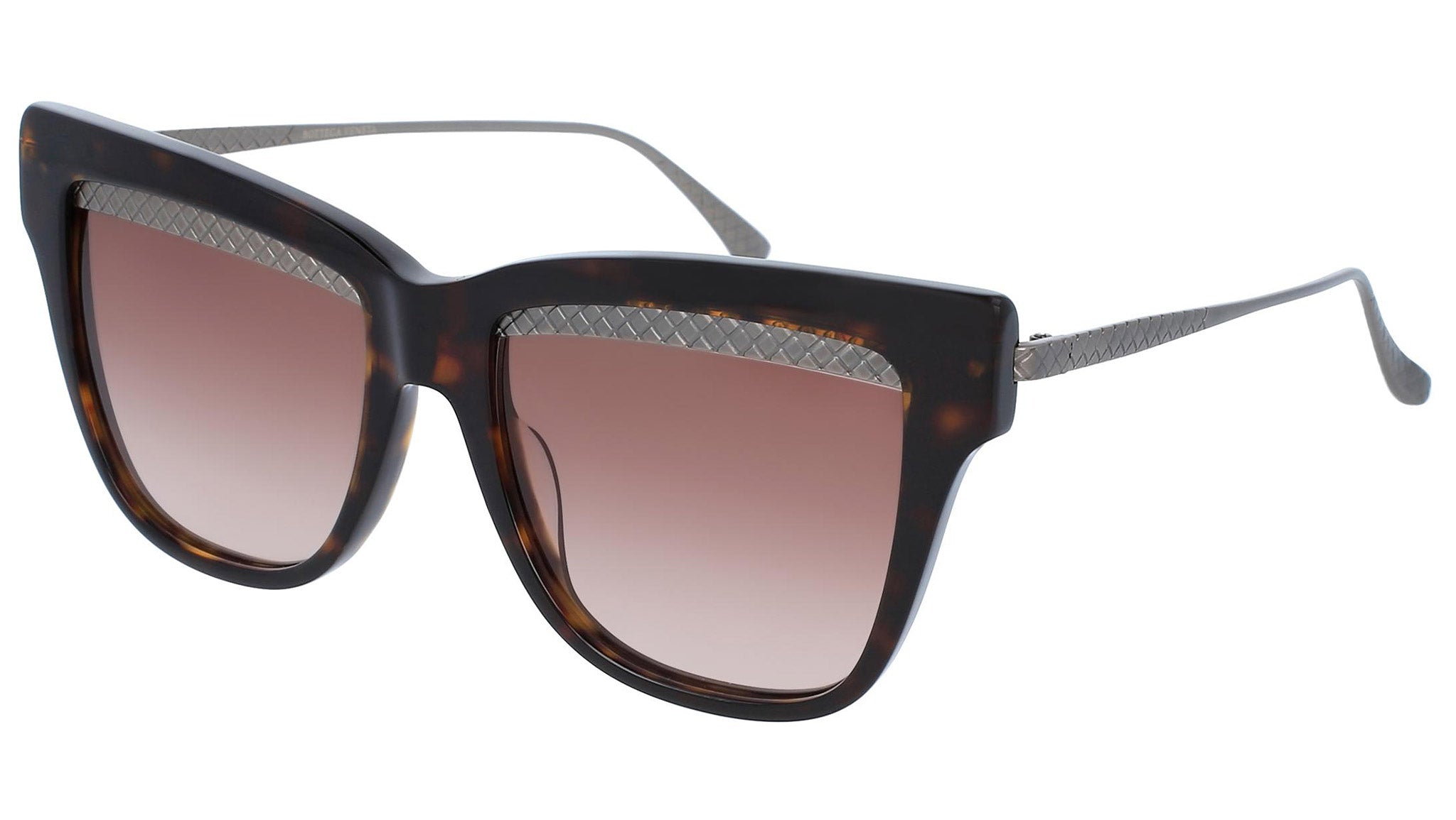 Bottega Veneta sunglasses collection model 0074S 003 featuring shiny dark havana and bu front frame and gradient brown lens. Inspired by Italian culture with a global outlook, the House is defined by a distinctly refined attitude. Bottega Veneta uses noble materials to create considered pieces that become part of their owner’s lives.