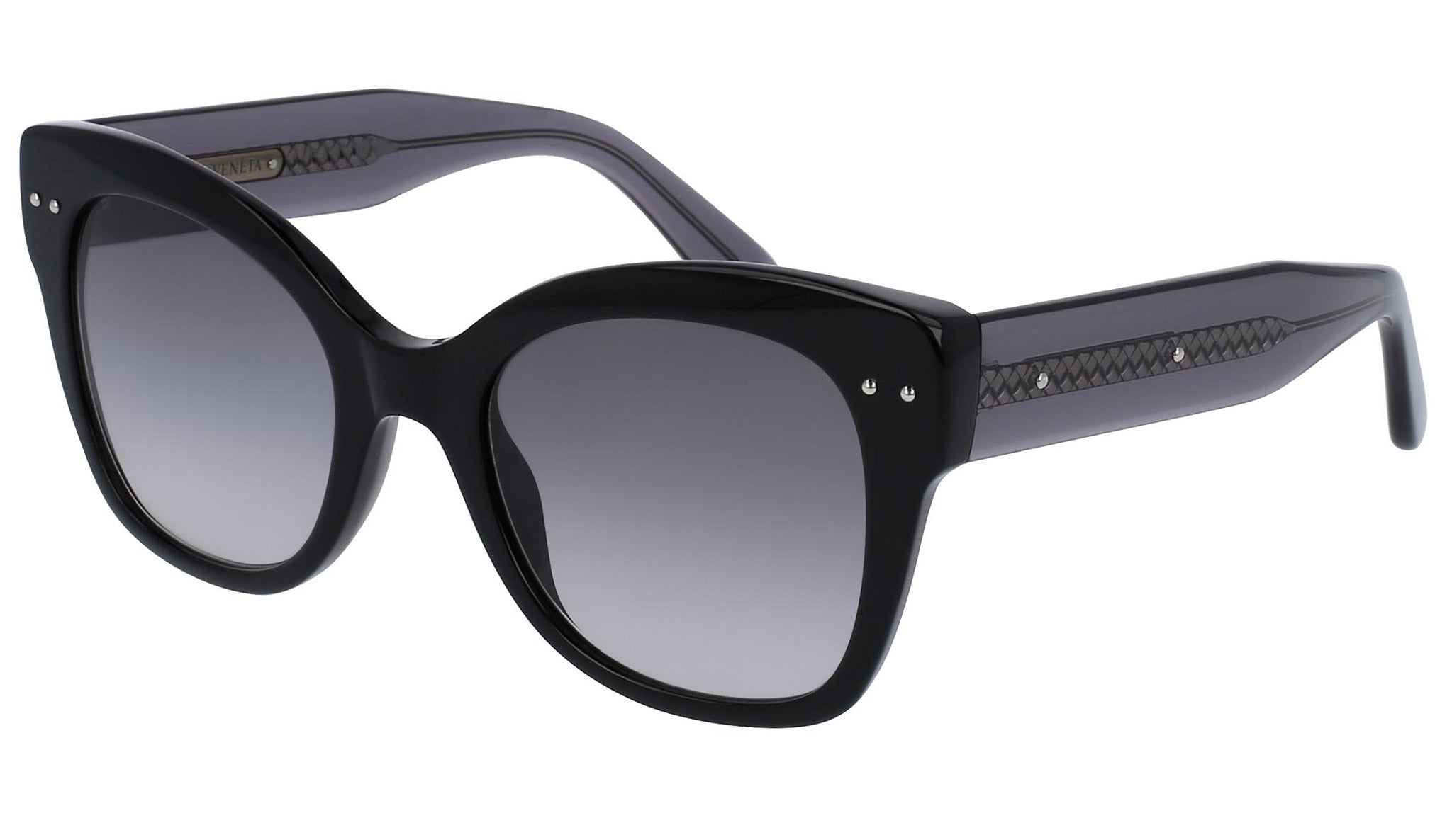 Bottega Veneta sunglasses collection model 0083S 001 featuring shiny black front frame and gradient grey lens. Inspired by Italian culture with a global outlook, the House is defined by a distinctly refined attitude. Bottega Veneta uses noble materials to create considered pieces that become part of their owner’s lives.