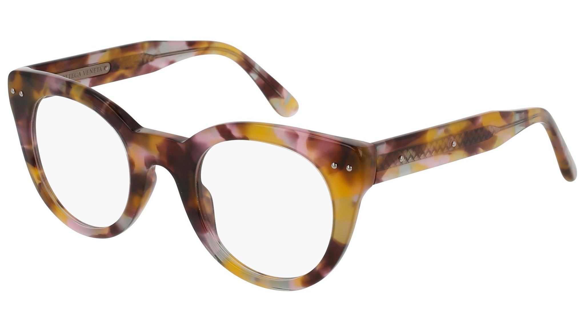 Occhiali da vista Bottega Veneta modello 0085O 005 featuring shiny havana milky rose front frame and havana temple.