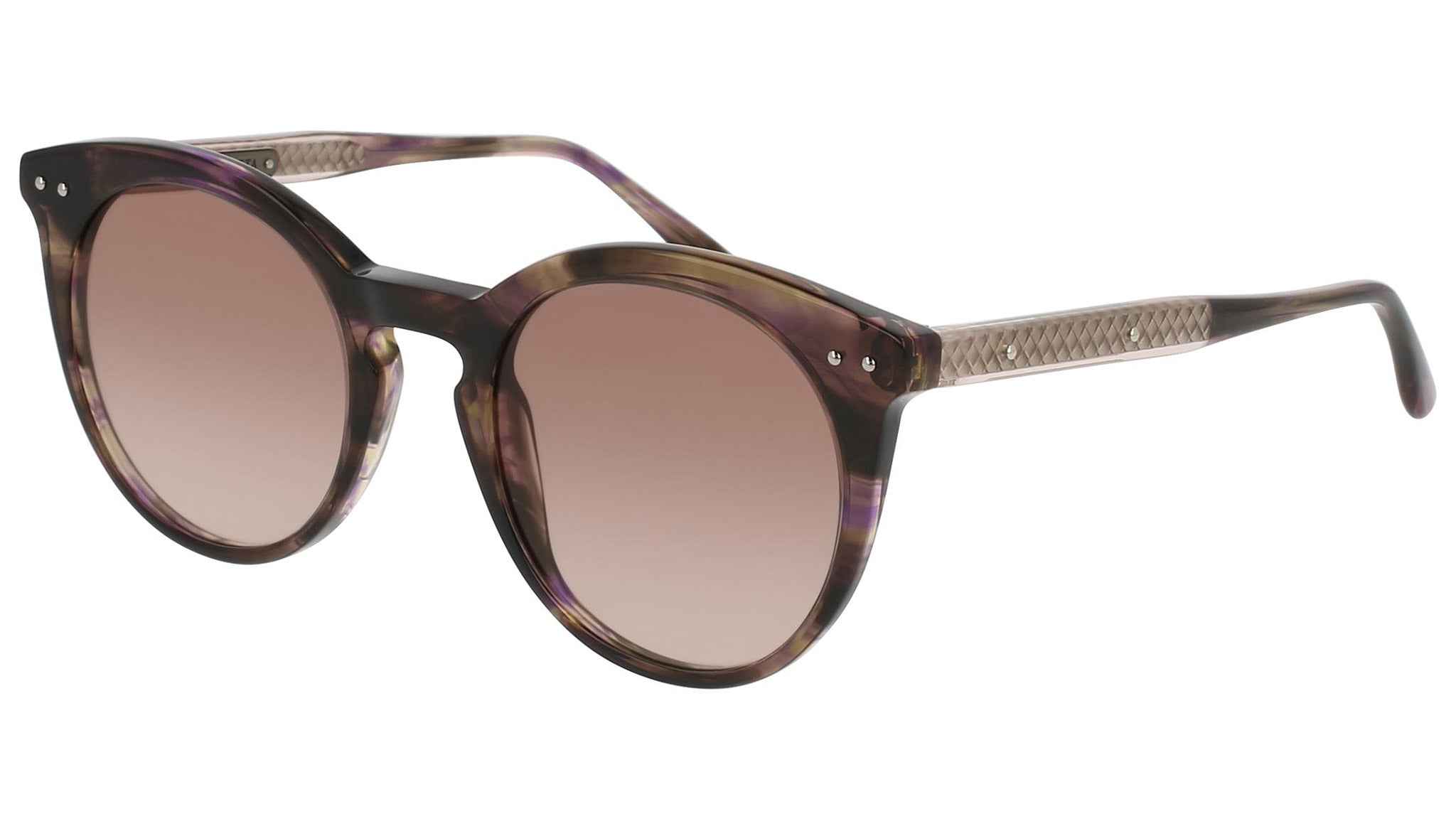 Bottega Veneta sunglasses collection model 0096S 001 featuring shiny melange violet havana front frame and gradient brown lens. Inspired by Italian culture with a global outlook, the House is defined by a distinctly refined attitude. Bottega Veneta uses noble materials to create considered pieces that become part of their owner’s lives.