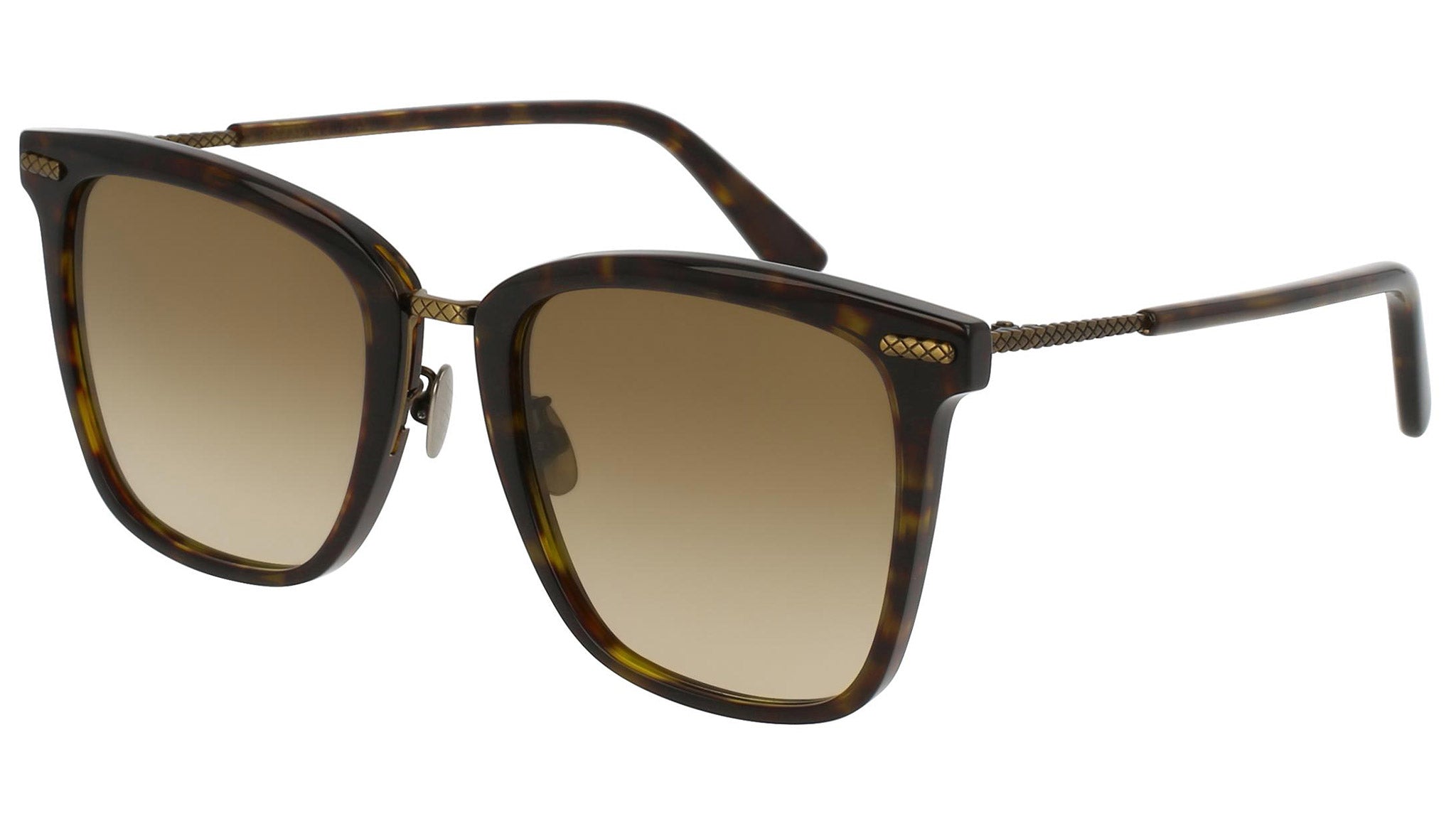 Bottega Veneta sunglasses collection model 0102S 002 featuring shiny dark havana front frame and gradient brown lens. Inspired by Italian culture with a global outlook, the House is defined by a distinctly refined attitude. Bottega Veneta uses noble materials to create considered pieces that become part of their owner’s lives.