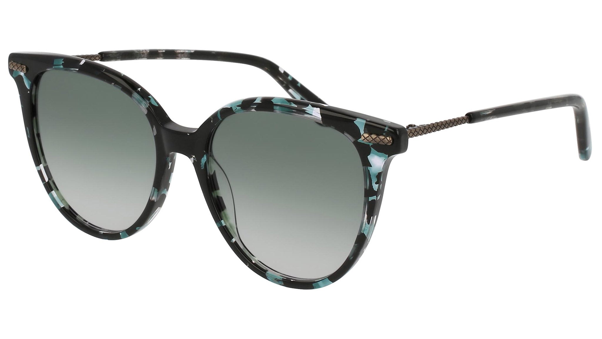 Bottega Veneta sunglasses collection model 0103S 005 featuring shiny black and green havana front frame and gradient green lens. Inspired by Italian culture with a global outlook, the House is defined by a distinctly refined attitude. Bottega Veneta uses noble materials to create considered pieces that become part of their owner’s lives.