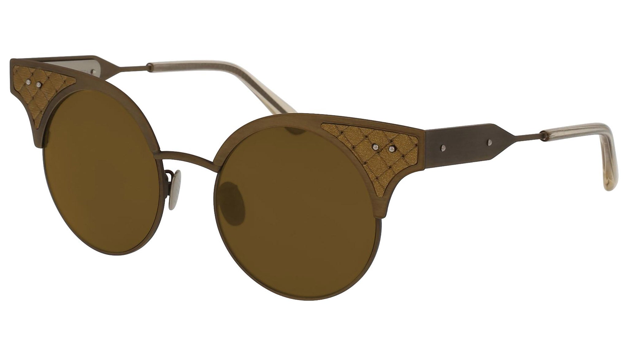 Bottega Veneta sunglasses collection model 0113S 003 featuring semimatte antique brass and helios front frame and solid nicotine lens. Inspired by Italian culture with a global outlook, the House is defined by a distinctly refined attitude. Bottega Veneta uses noble materials to create considered pieces that become part of their owner’s lives.