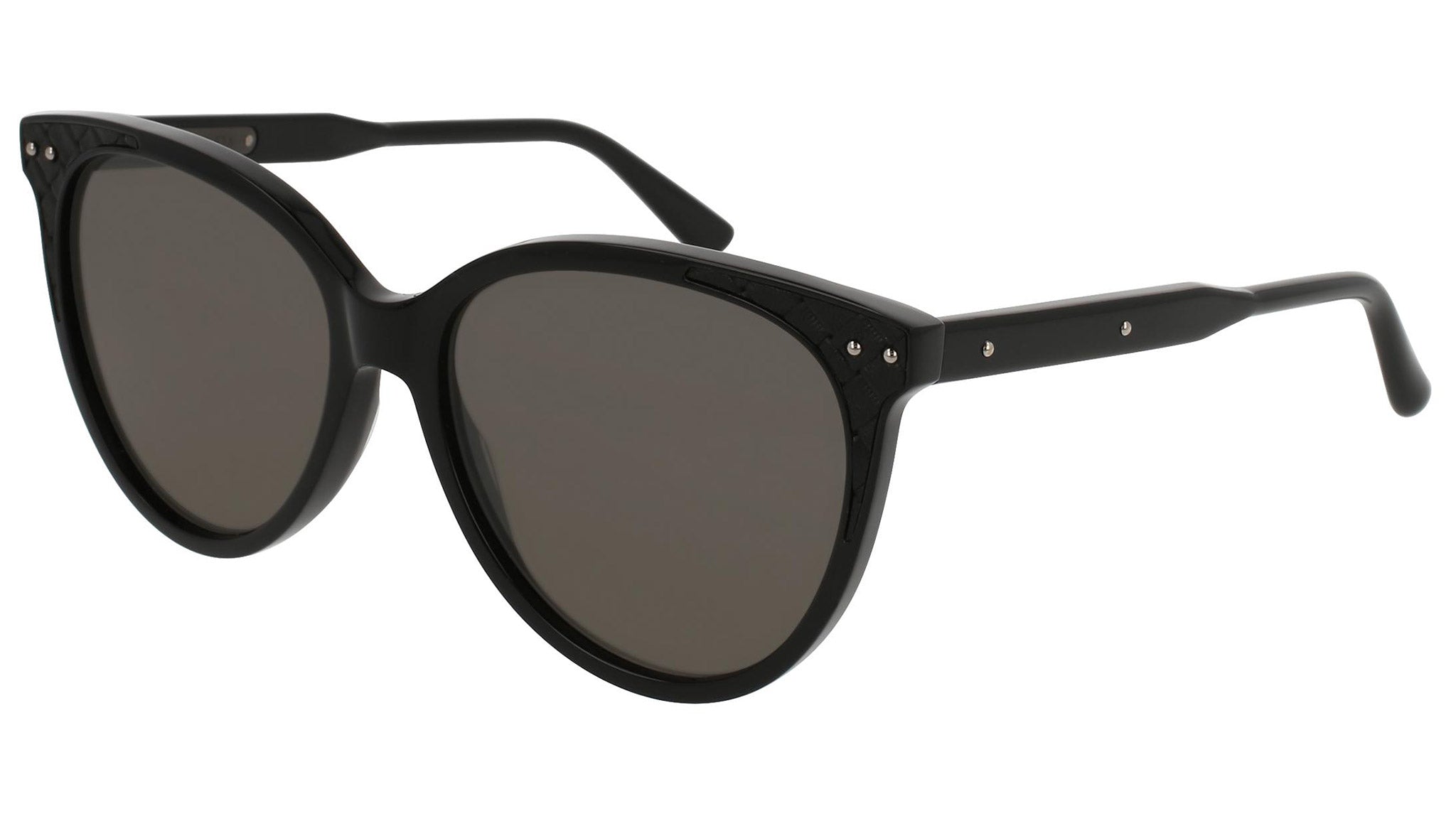 Bottega Veneta sunglasses collection model 0119S 001 featuring shiny black and black leather front frame and solid grey lens. Inspired by Italian culture with a global outlook, the House is defined by a distinctly refined attitude. Bottega Veneta uses noble materials to create considered pieces that become part of their owner’s lives.