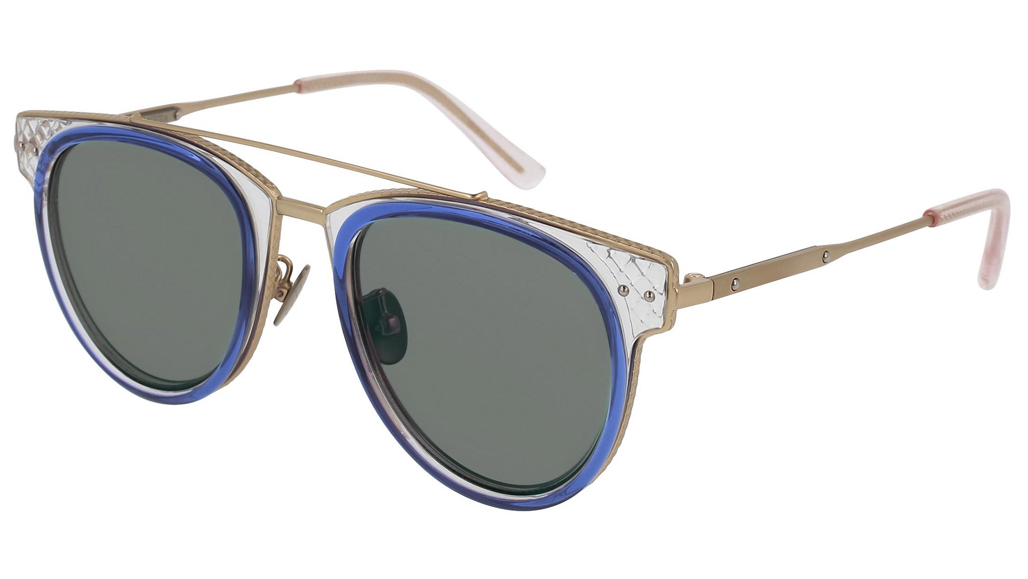Bottega Veneta sunglasses collection model 0123S 005 featuring bilayer shiny transparent blue and pink front frame and mirror blue lens. Inspired by Italian culture with a global outlook, the House is defined by a distinctly refined attitude. Bottega Veneta uses noble materials to create considered pieces that become part of their owner’s lives.