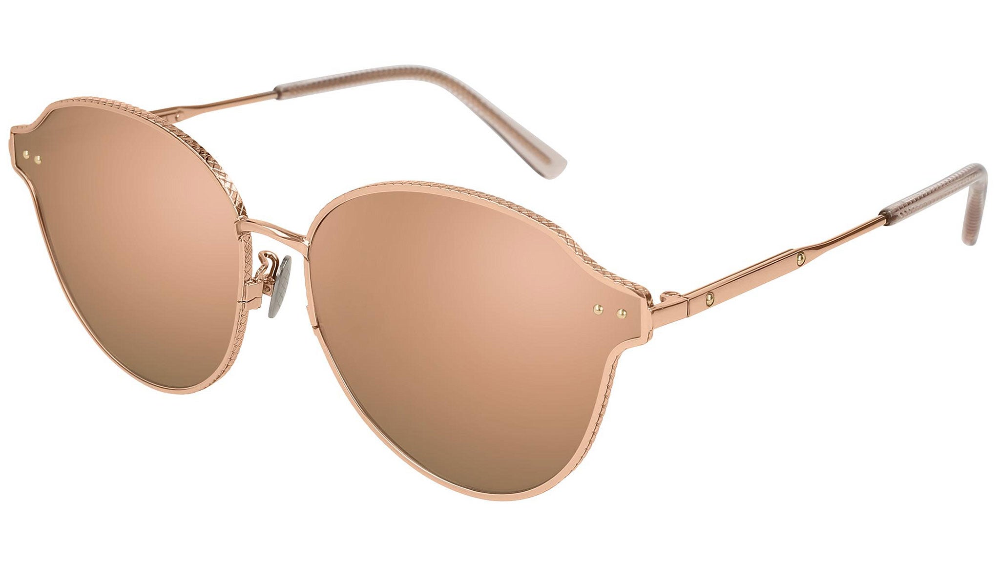 Bottega Veneta sunglasses collection model BV0156SK 001 featuring shiny rose gold frame and solid brown + ml rose gold + gold et inner ar lens. Inspired by Italian culture with a global outlook, the House is defined by a distinctly refined attitude. Bottega Veneta uses noble materials to create considered pieces that become part of their owner’s lives.