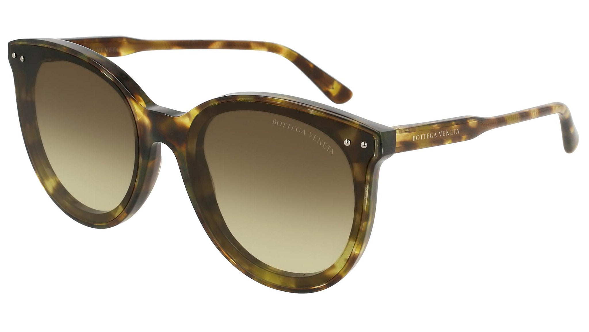 Bottega Veneta sunglasses collection model 0165S 004 featuring shiny green havana front frame and gradient brown AR gold lens. Inspired by Italian culture with a global outlook, the House is defined by a distinctly refined attitude. Bottega Veneta uses noble materials to create considered pieces that become part of their owner’s lives.