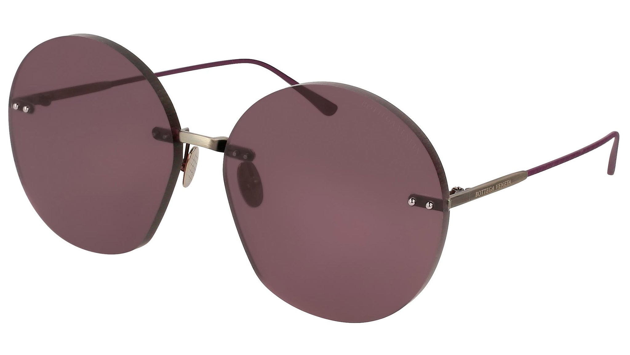 Bottega Veneta sunglasses collection model 0178S 003 featuring semimatte antique silver front frame and solid bordeaux and shining violet coating lens. Inspired by Italian culture with a global outlook, the House is defined by a distinctly refined attitude. Bottega Veneta uses noble materials to create considered pieces that become part of their owner’s lives.