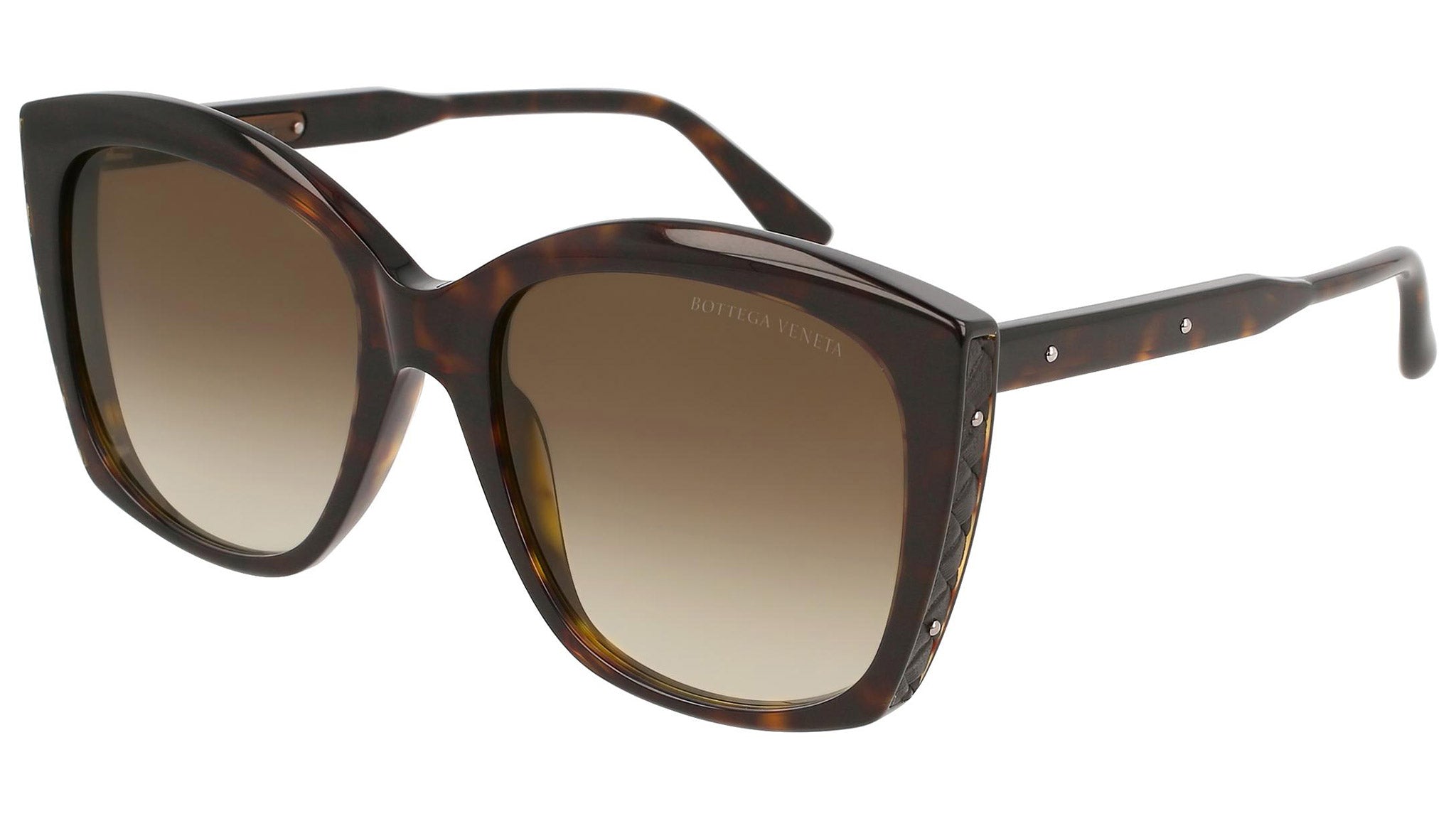 Bottega Veneta sunglasses collection model 0182S 002 featuring shiny dark havana and espresso front frame and gradient brown and inner AR gold lens. Inspired by Italian culture with a global outlook, the House is defined by a distinctly refined attitude. Bottega Veneta uses noble materials to create considered pieces that become part of their owner’s lives.