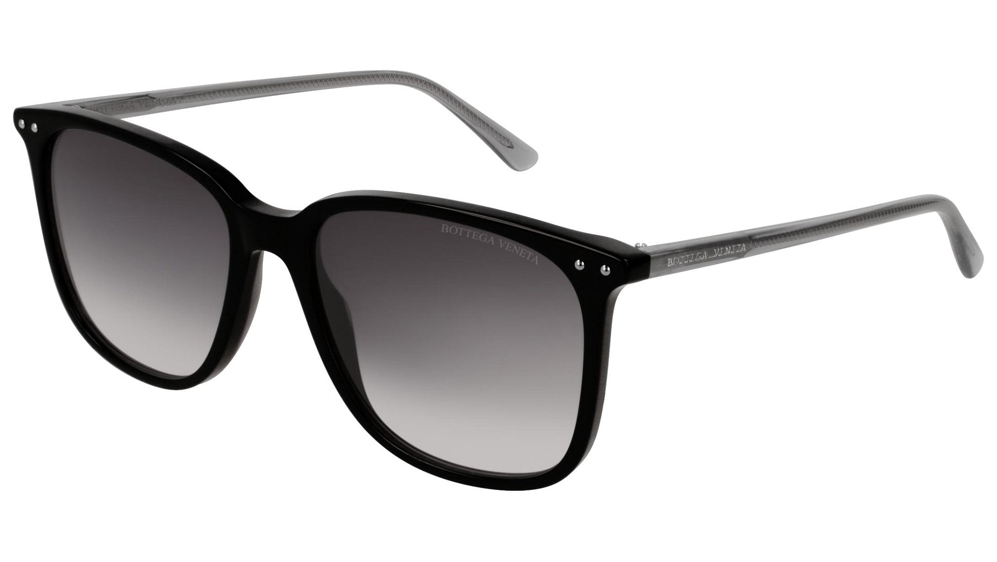 Bottega Veneta sunglasses collection model 0191S 001 featuring shiny black front frame and gradient grey lens. Inspired by Italian culture with a global outlook, the House is defined by a distinctly refined attitude. Bottega Veneta uses noble materials to create considered pieces that become part of their owner’s lives.
