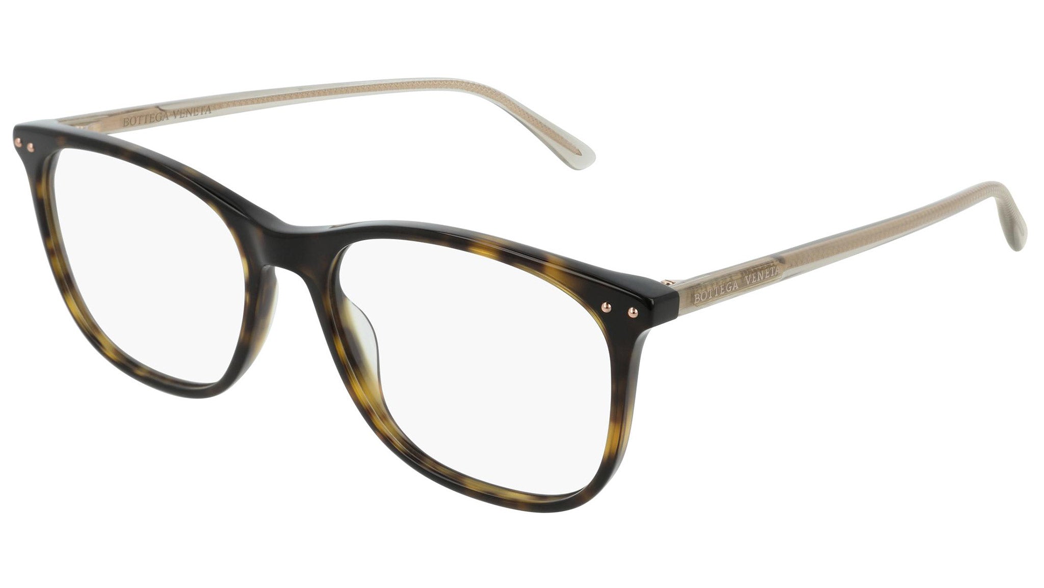 Occhiali da vista Bottega Veneta modello 0193O 002 featuring shiny dark havana front frame and brown temple.