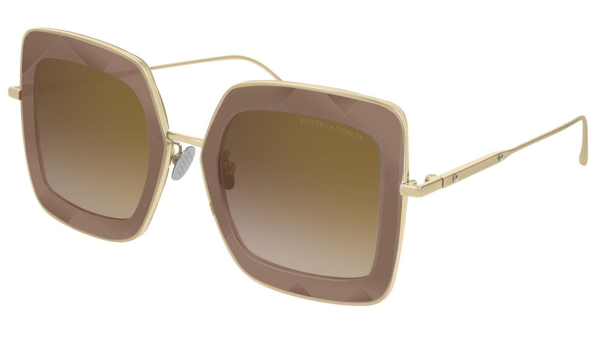 Bottega Veneta sunglasses collection model 0209S 002 featuring shiny opal brown and shiny cross brushed light gold front frame and gradient brown/rose and flash bronze lens. Inspired by Italian culture with a global outlook, the House is defined by a distinctly refined attitude. Bottega Veneta uses noble materials to create considered pieces that become part of their owner’s lives.