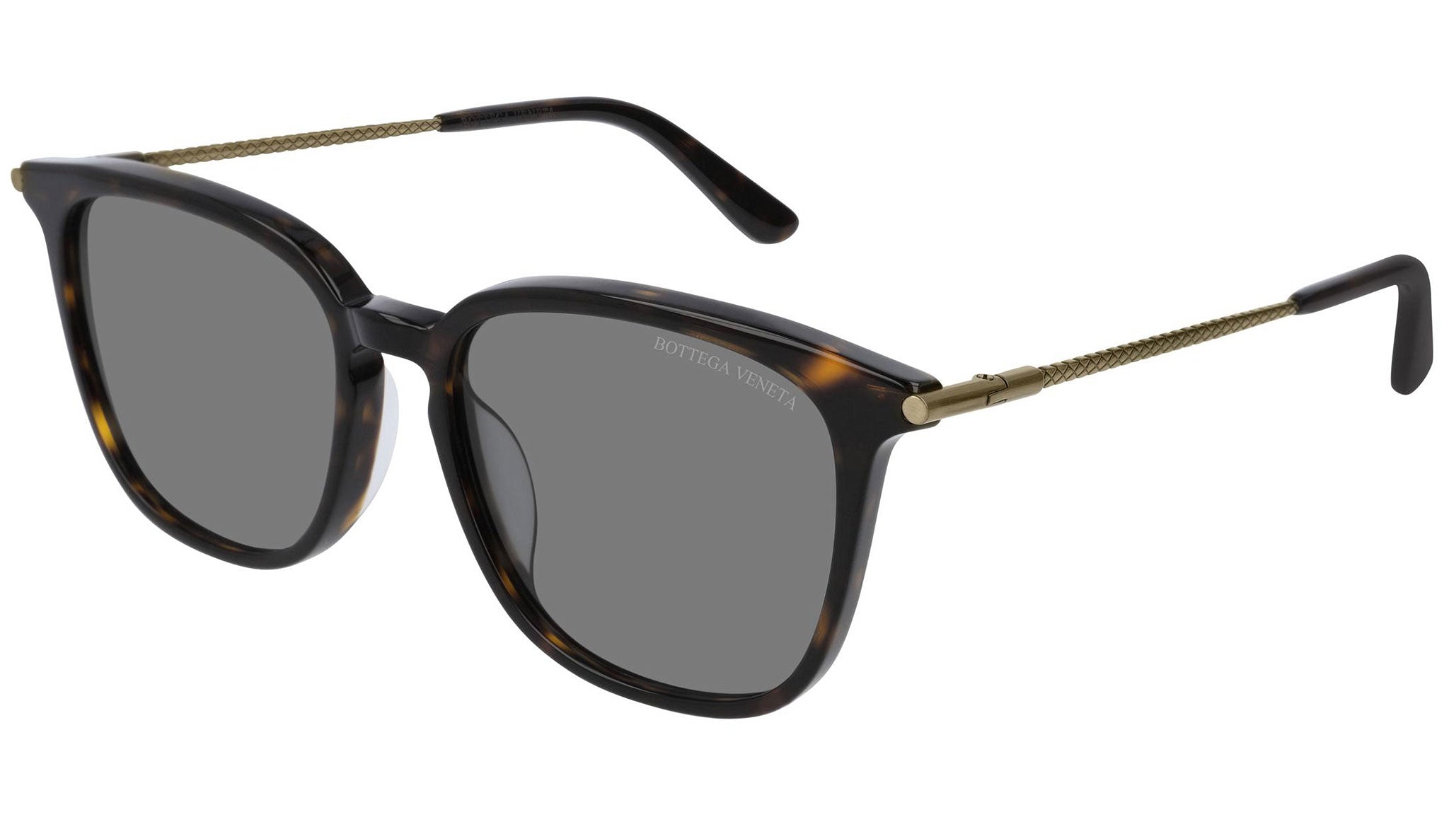 Bottega Veneta sunglasses collection model BV0219SK 003 featuring shiny dark havana frame and solid grey lens. Inspired by Italian culture with a global outlook, the House is defined by a distinctly refined attitude. Bottega Veneta uses noble materials to create considered pieces that become part of their owner’s lives.