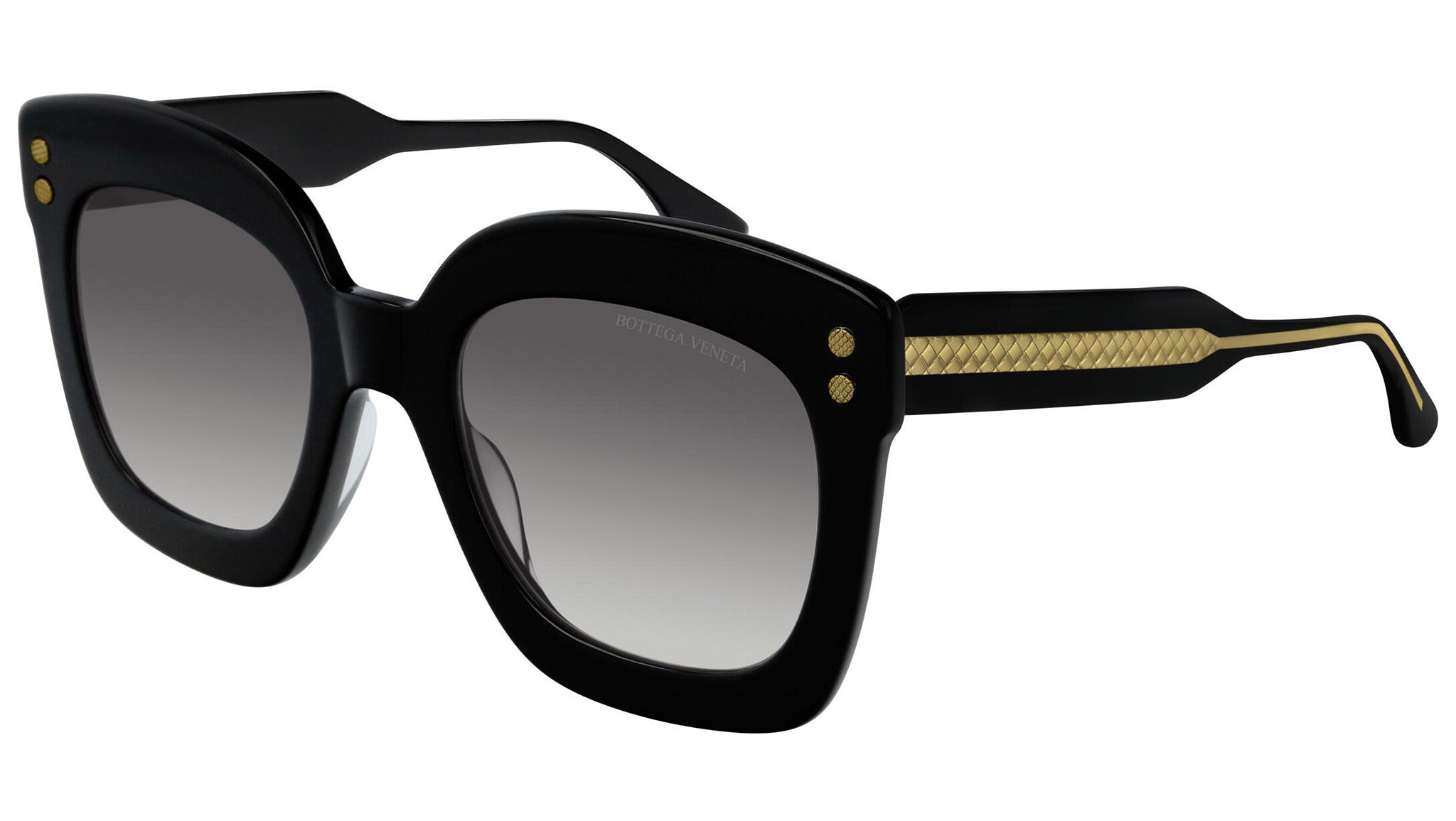 Bottega Veneta sunglasses collection model 0238S 001 featuring shiny black front frame and gradient grey lens. Inspired by Italian culture with a global outlook, the House is defined by a distinctly refined attitude. Bottega Veneta uses noble materials to create considered pieces that become part of their owner’s lives.