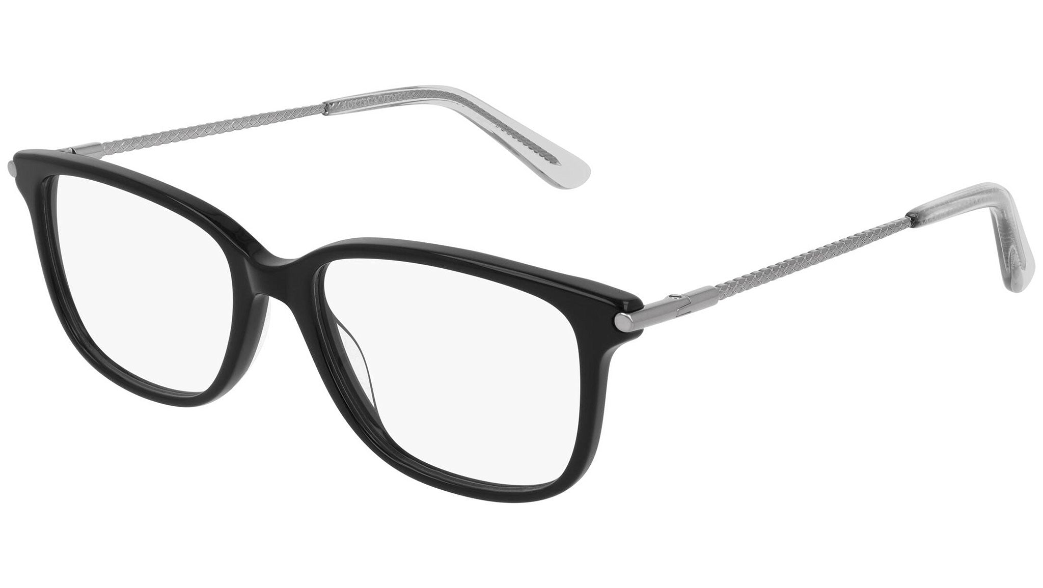 Occhiali da vista Bottega Veneta modello BV0255O 001 featuring shiny black / shiny dark ruthenium frame and ruthenium temple.