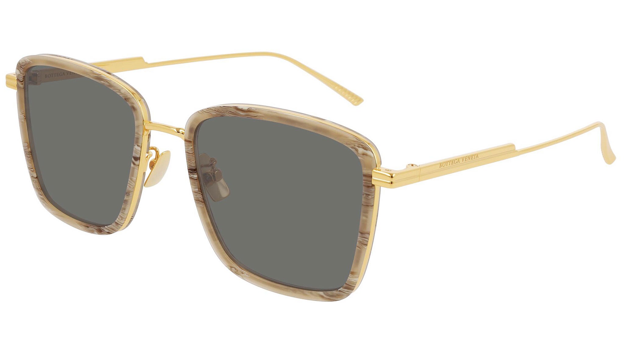 Bottega Veneta sunglasses collection model BV1008SK 004 featuring shiny corno honey wood shiny gold frame and solid brown lens. Inspired by Italian culture with a global outlook, the House is defined by a distinctly refined attitude. Bottega Veneta uses noble materials to create considered pieces that become part of their owner’s lives.