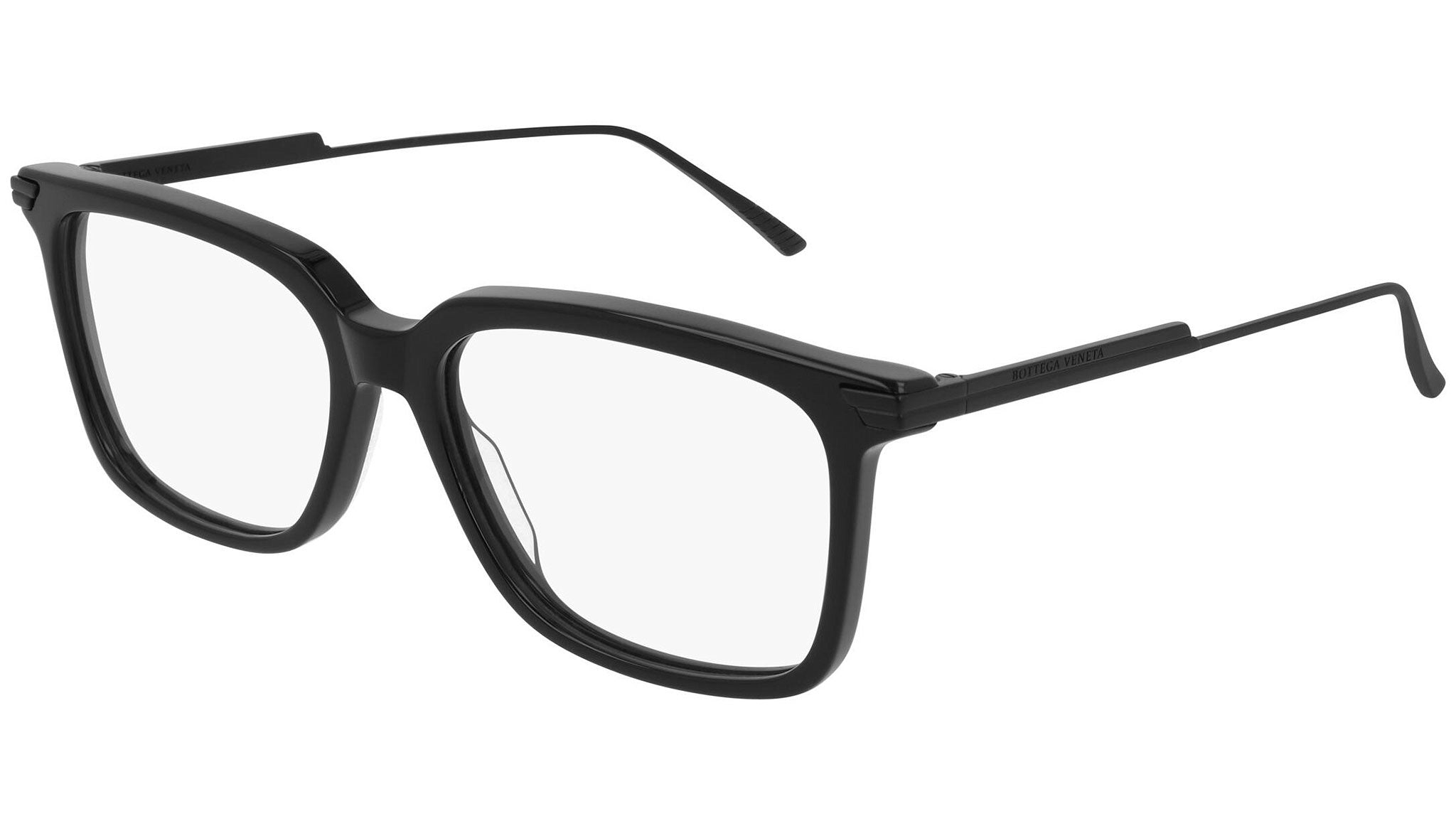 Occhiali da vista Bottega Veneta modello BV1009O 007 featuring shiny black / semimatte black frame and black temple.