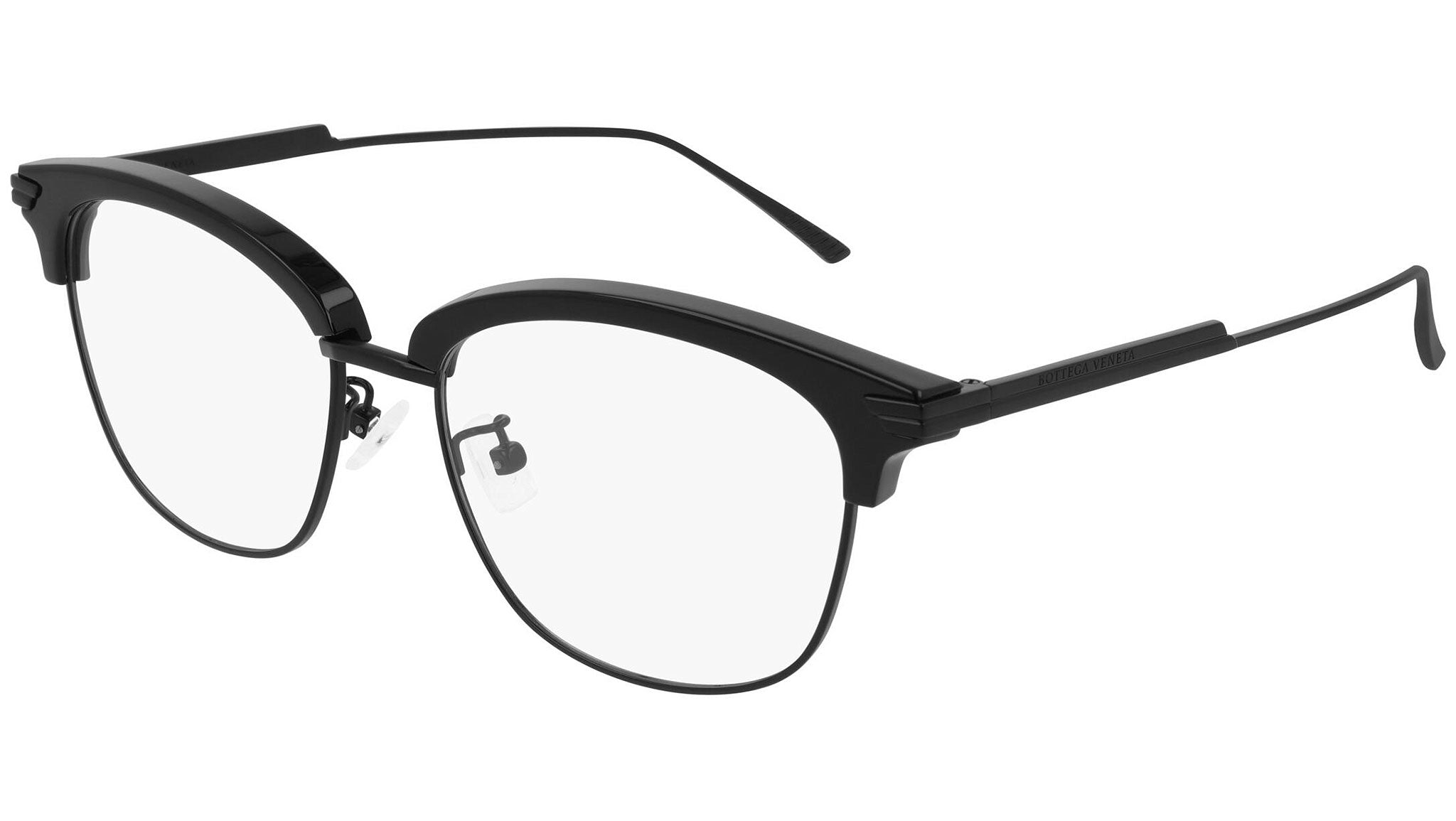 Occhiali da vista Bottega Veneta modello BV1011OA 007 featuring shiny black / semimatte black frame and black temple.