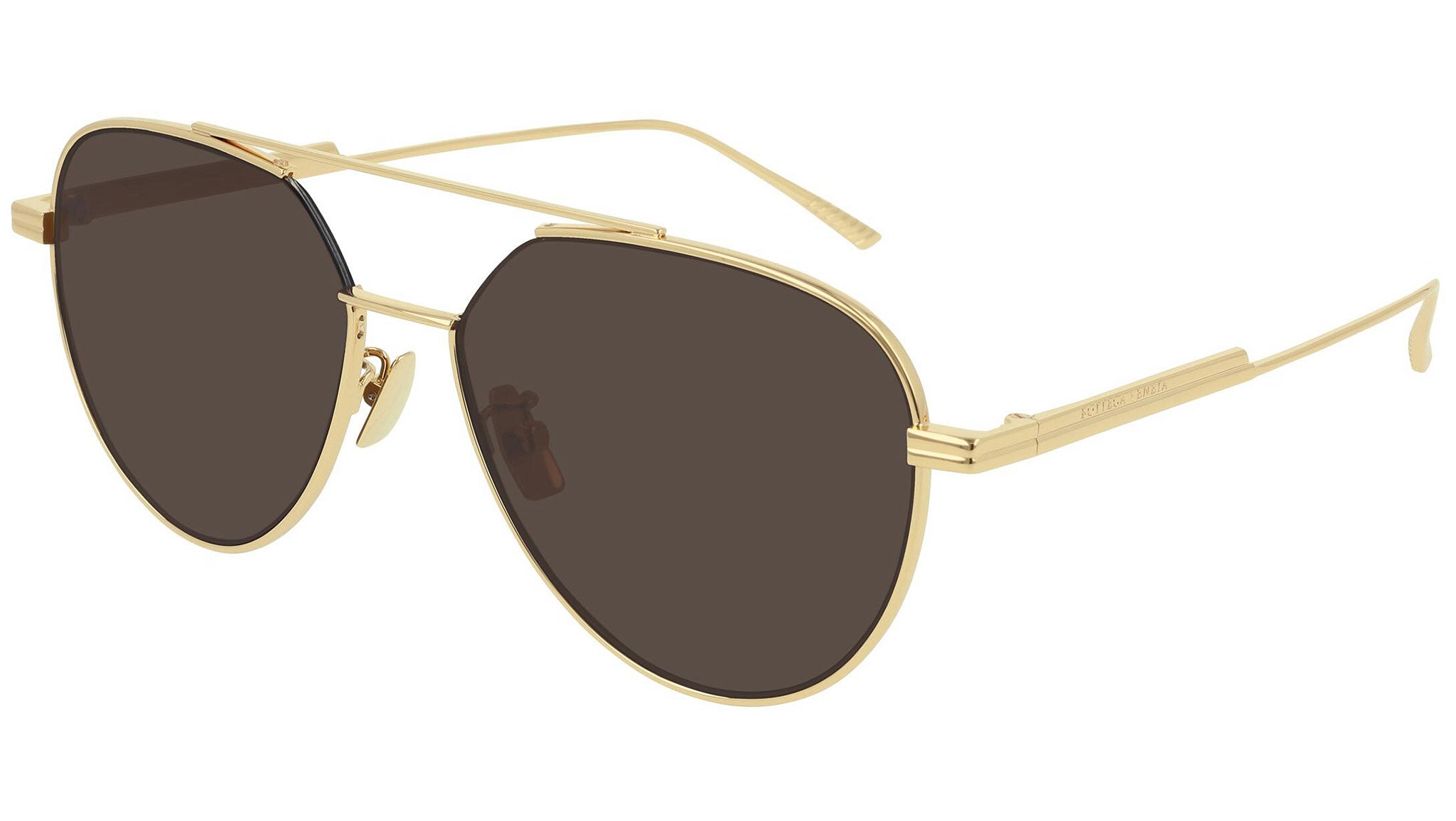 Bottega Veneta sunglasses collection model BV1013SK 003 featuring shiny gold lv frame and solid brown co-branding zeiss lens. Inspired by Italian culture with a global outlook, the House is defined by a distinctly refined attitude. Bottega Veneta uses noble materials to create considered pieces that become part of their owner’s lives.