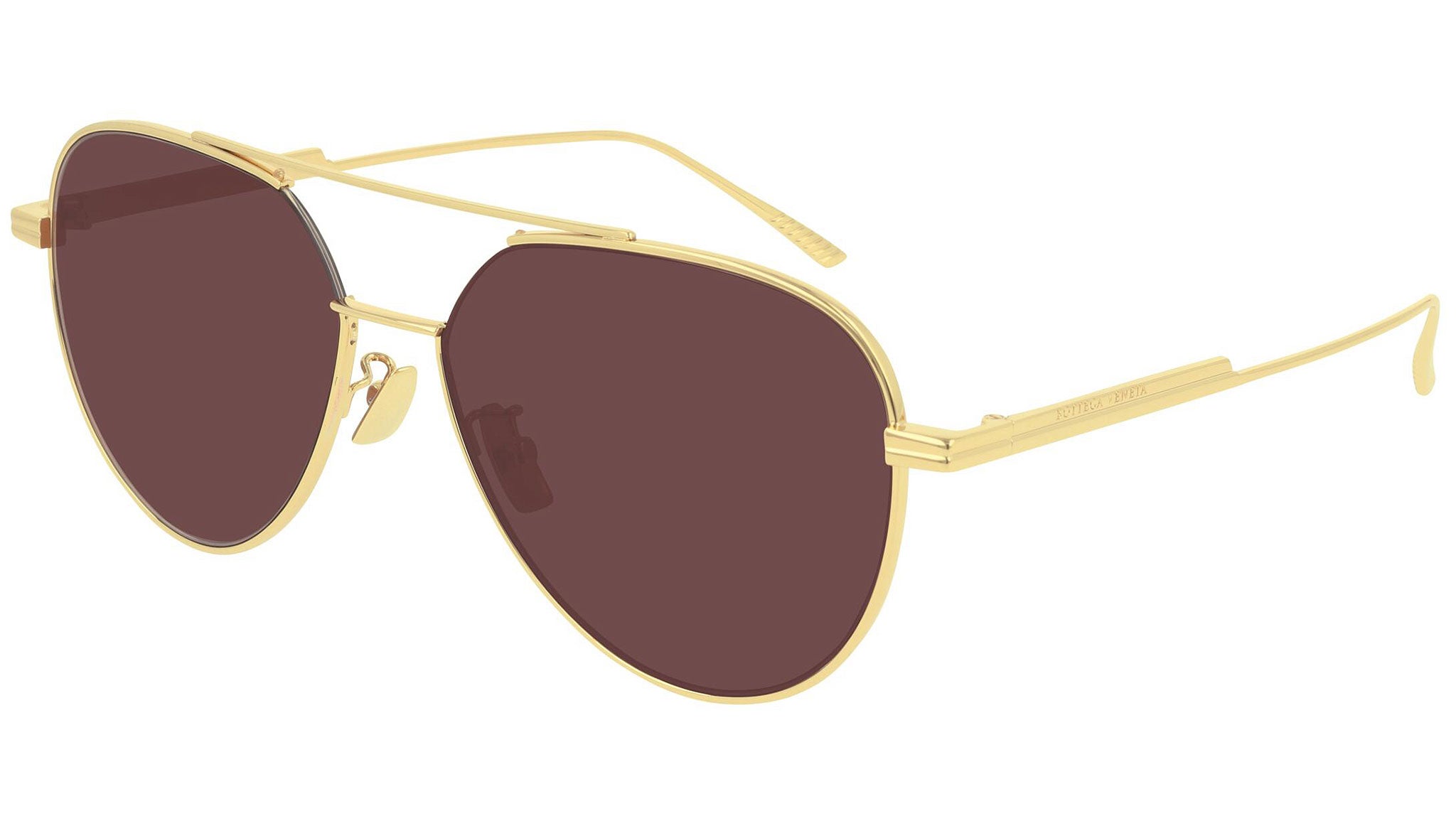 Bottega Veneta sunglasses collection model BV1013SK 011 featuring shiny gold lv frame and solid burgundy - co-branding zeiss lens. Inspired by Italian culture with a global outlook, the House is defined by a distinctly refined attitude. Bottega Veneta uses noble materials to create considered pieces that become part of their owner’s lives.
