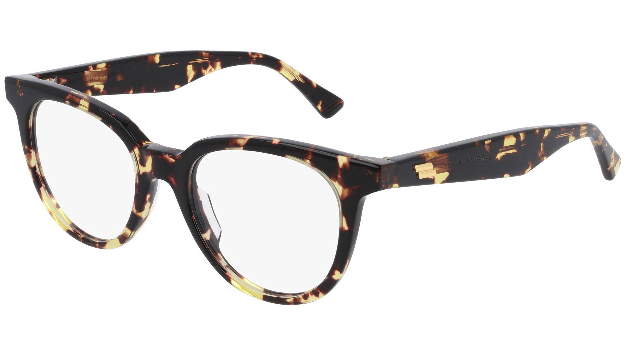 Occhiali da vista Bottega Veneta linea New classic variante colore 002 avana maculato lucido con astine color tartaruga.