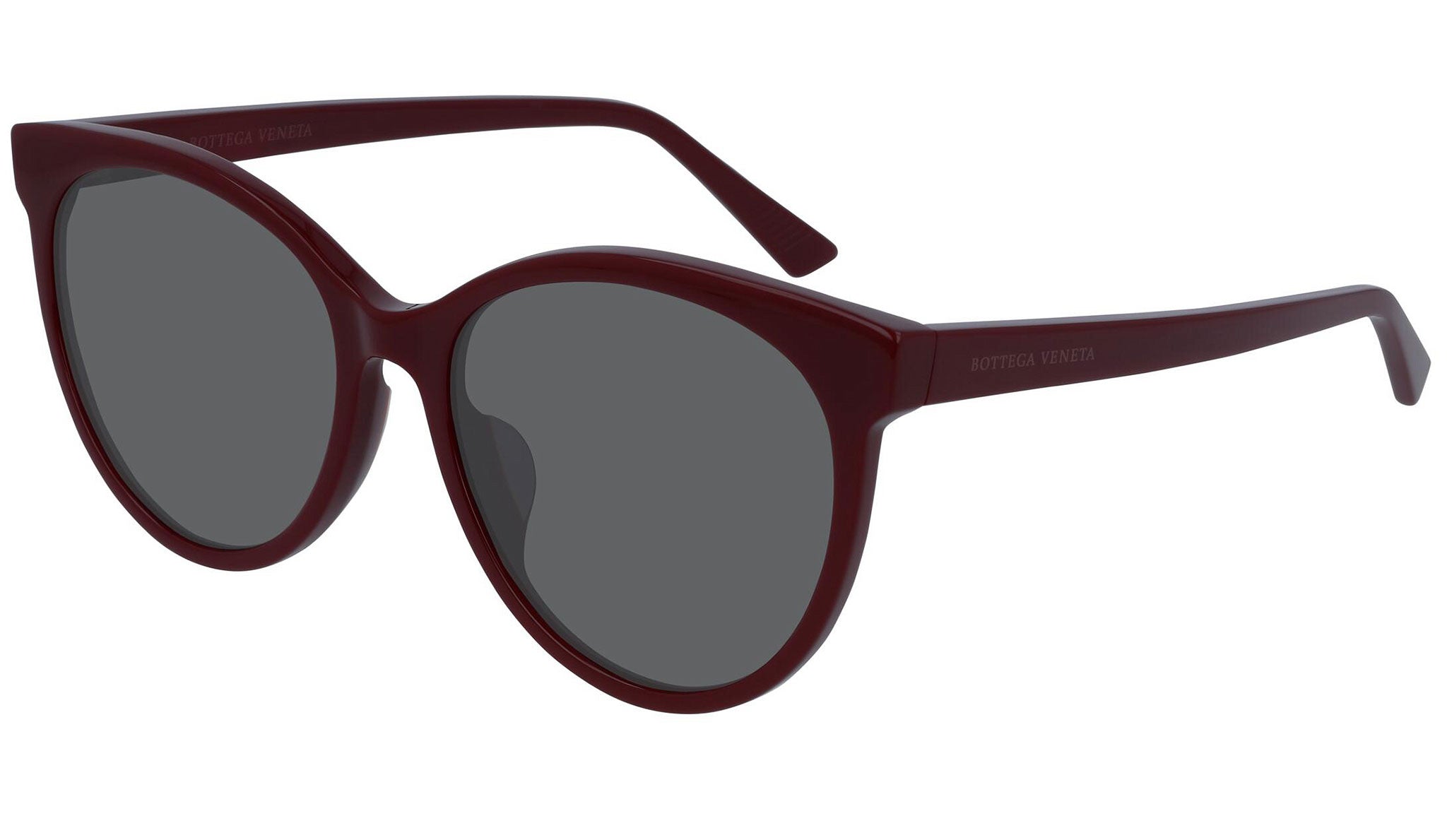 Bottega Veneta sunglasses collection model BV1022SK 003 featuring shiny solid burgundy frame and solid grey lens. Inspired by Italian culture with a global outlook, the House is defined by a distinctly refined attitude. Bottega Veneta uses noble materials to create considered pieces that become part of their owner’s lives.
