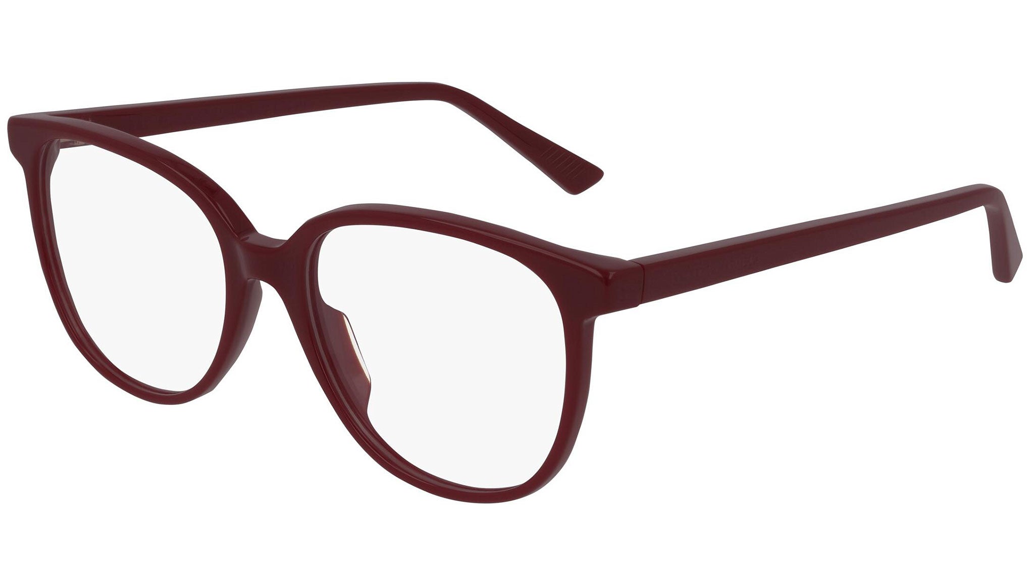 Occhiali da vista Bottega Veneta linea Minimalist variante colore 003 bordeaux tinta unita lucido con astine color rosso borgogna.