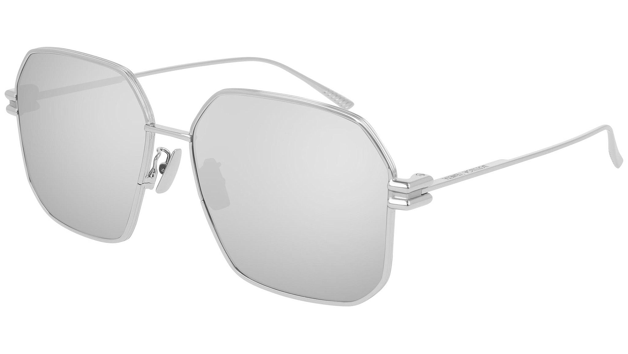 Bottega Veneta sunglasses collection model BV1047S 004 featuring shiny silver frame and solid grey + mirror silver lens. Inspired by Italian culture with a global outlook, the House is defined by a distinctly refined attitude. Bottega Veneta uses noble materials to create considered pieces that become part of their owner’s lives.