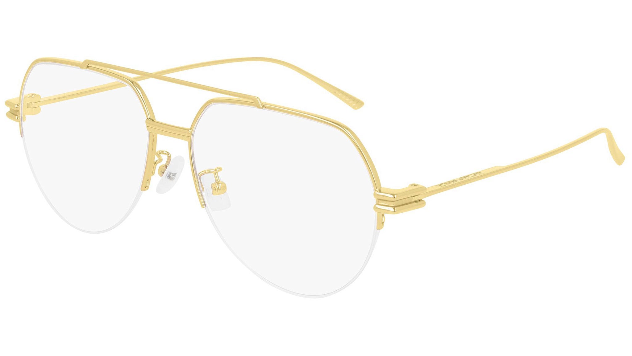 Occhiali da vista Bottega Veneta linea New classic variante colore 001 oro rosa lucido con astine color oro.