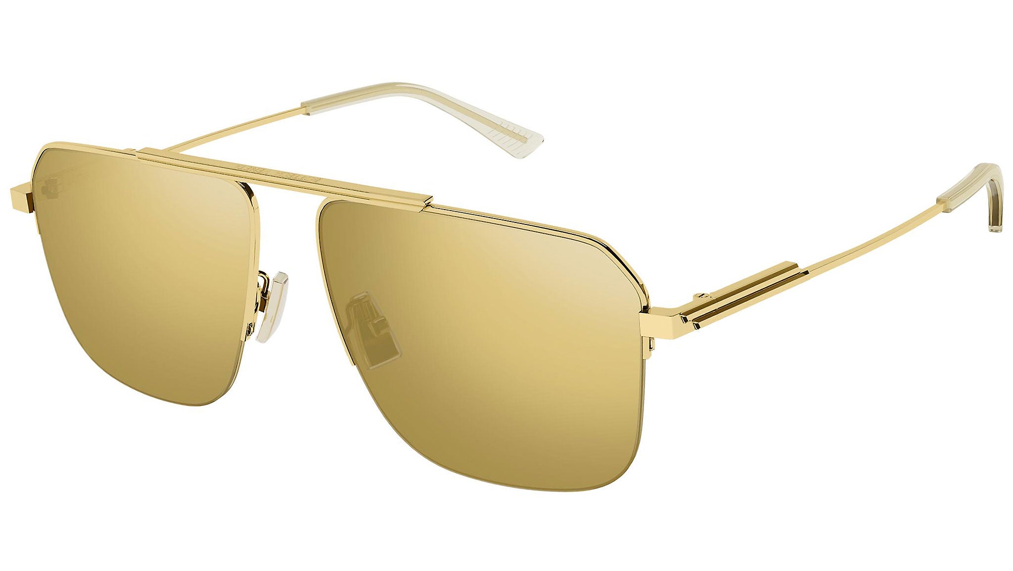 Occhiali da sole Bottega Veneta linea Minimalist modello 1149S, variante colore 005 oro lucido con lenti color marrone tinta unita + oro multilayer.