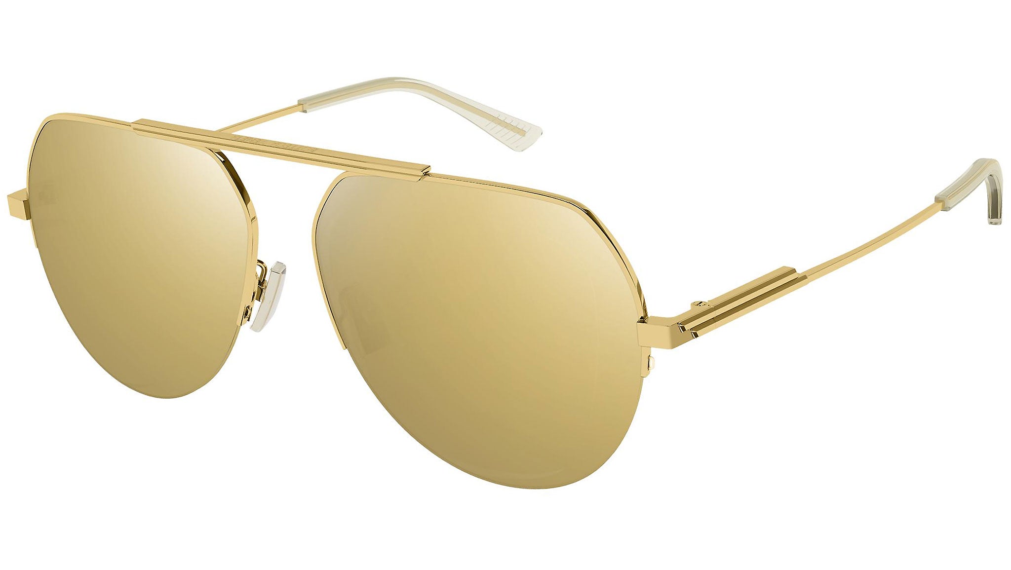 Occhiali da sole Bottega Veneta linea Minimalist modello 1150S, variante colore 006 oro lucido con lenti color marrone + oro multistrato.
