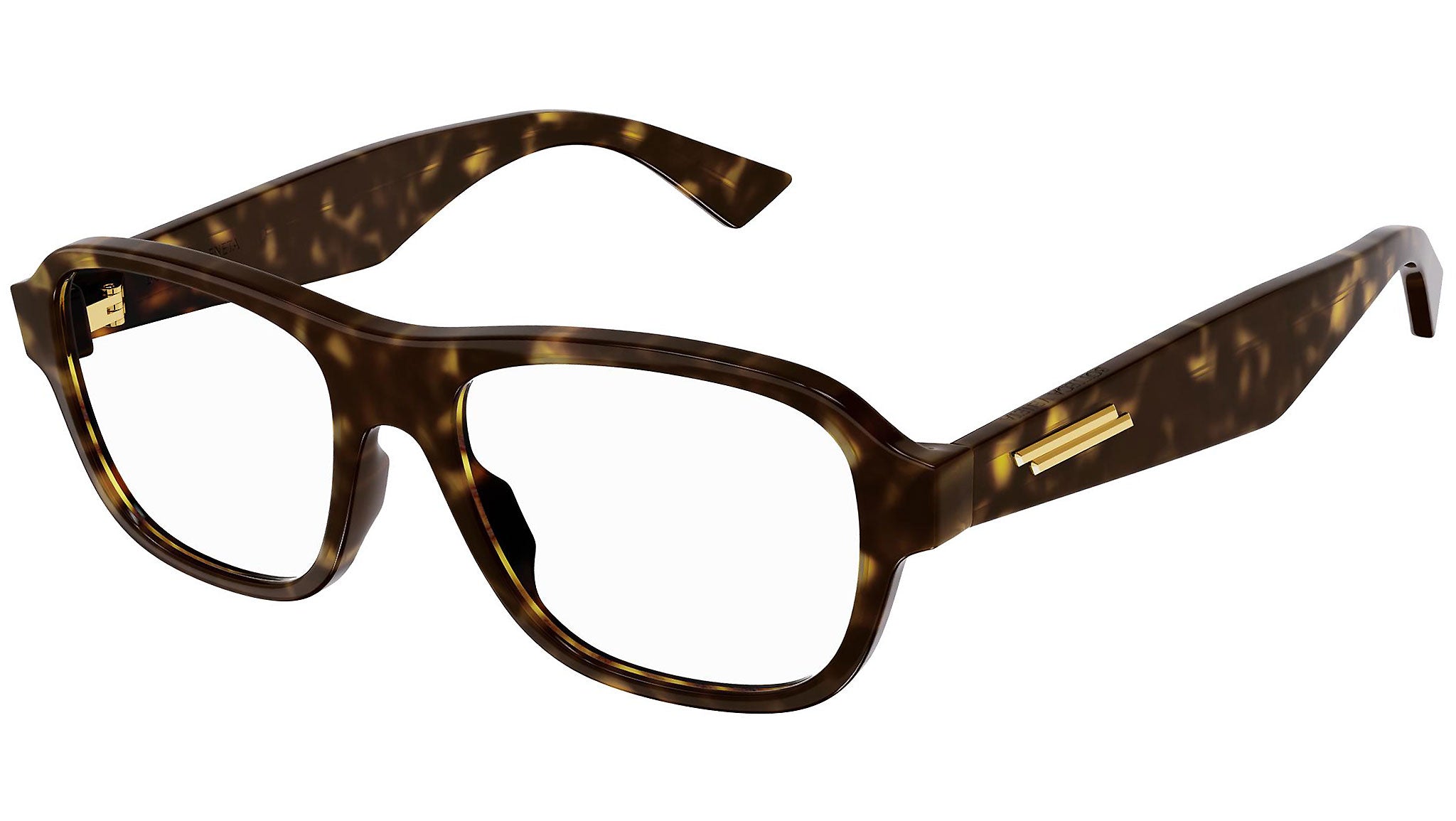 Occhiali da vista Bottega Veneta linea New Classic variante colore 002 tartaruga scuro lucido con astine color tartaruga.